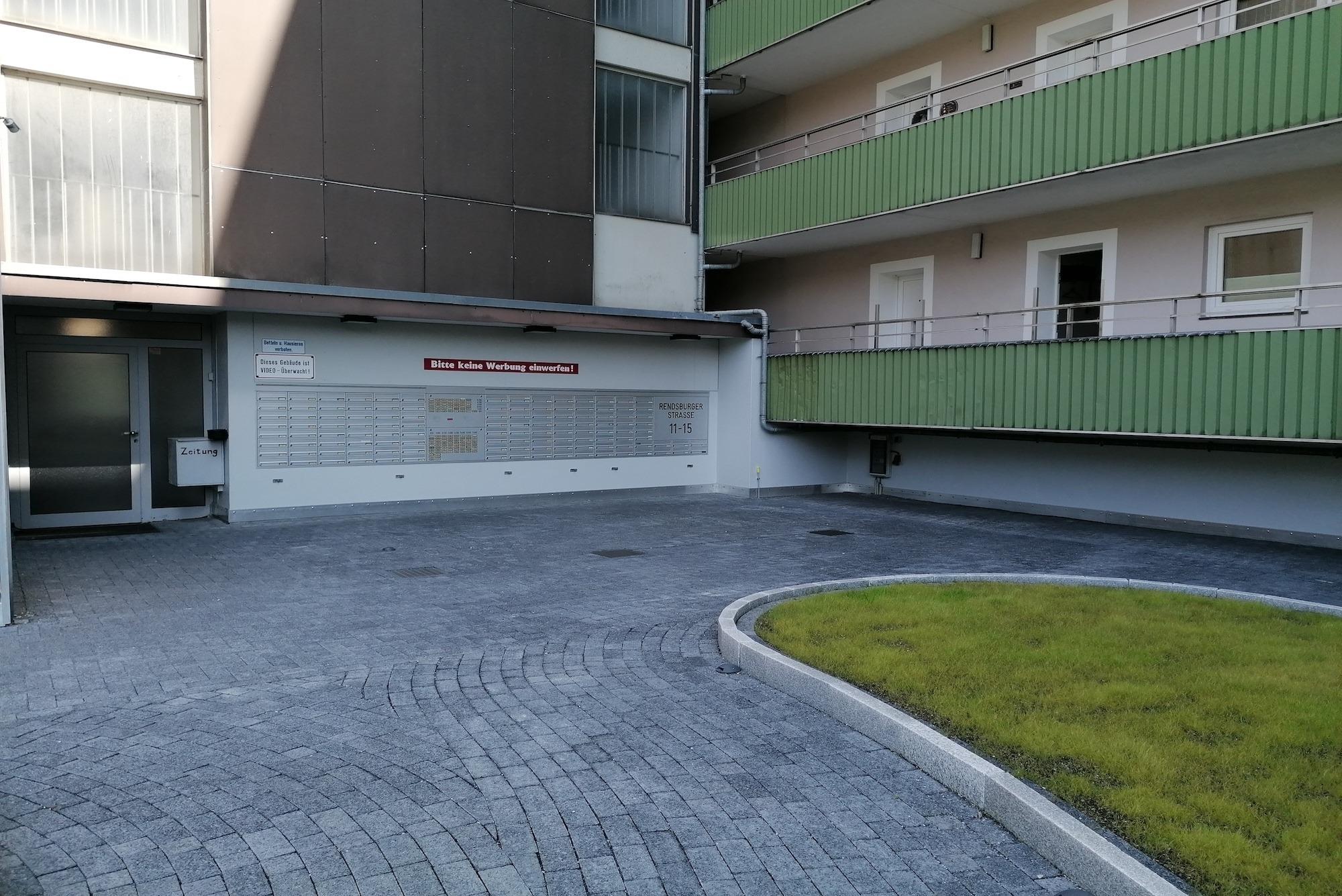 Treffpunkt: rechte Seite vom Hochhaus, neben der Zufahrt zum Tiefgaragenstellplatz, 1. Tor Südgarage