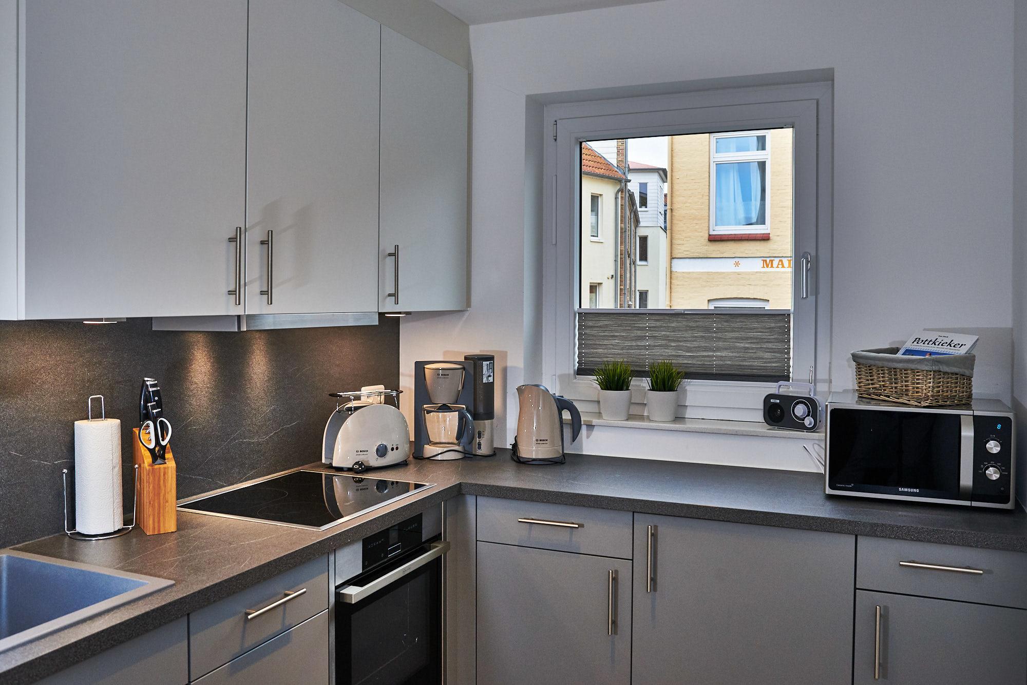 Die Ferienwohnung "Wohndock" (Bj. 2016) liegt nur 50m von der Hafenpromenade entfernt, auf der einen Seite schließen sich der Strand und seine lange Promenade an, auf der anderen Seite können Sie das Stadtzentrum und die naheliegende Gastronomie in wenigen Minuten erreichen.
