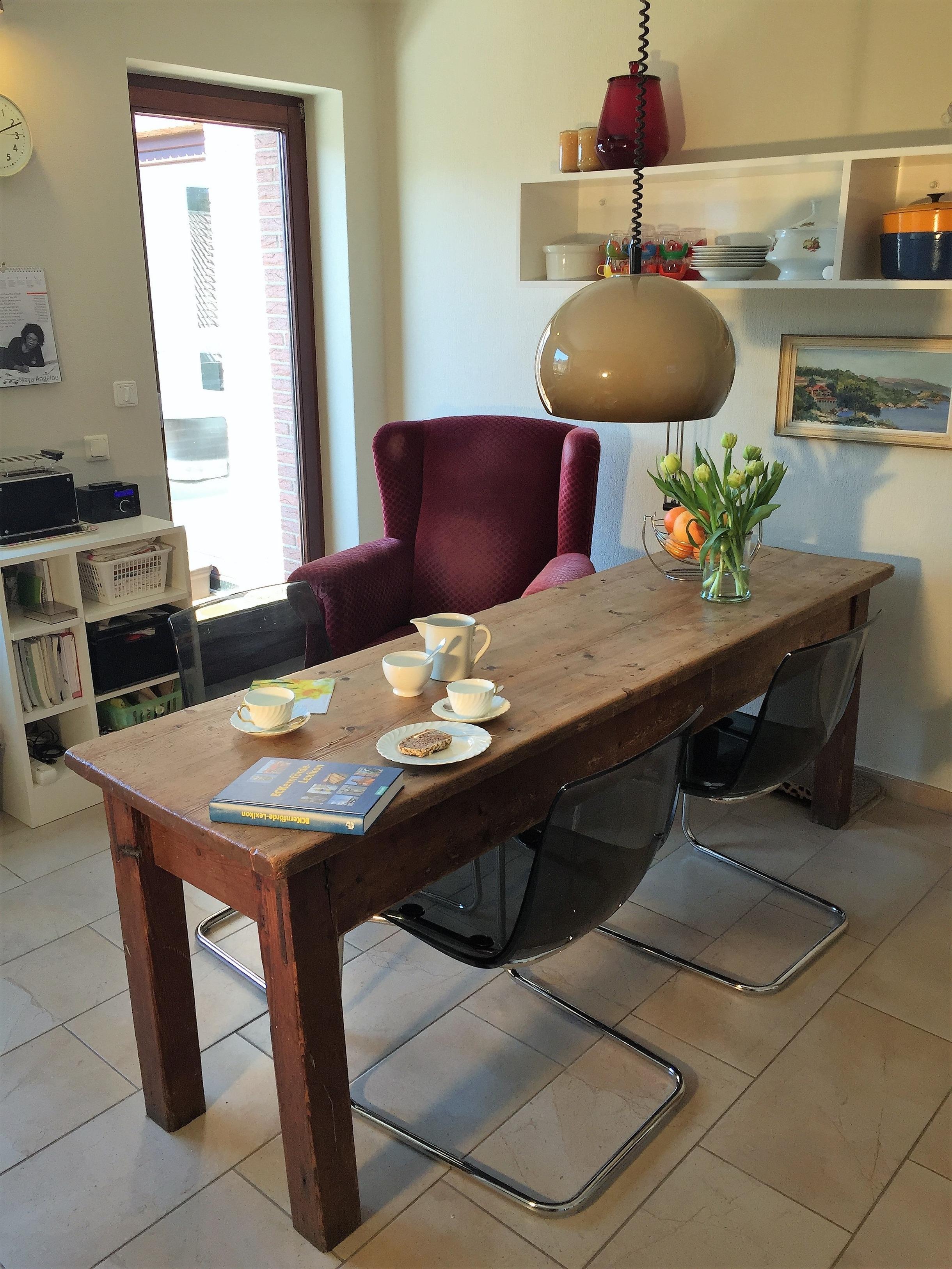 Die Ferienwohnung Weitblick bietet Ihnen auf 2 Etagen und 130 m² viel Raum für einen entspannten Urlaub mit der Familie oder mit Freunden. Neben der Wohnküche bietet das geräumige Wohnzimmer Platz zum Klönen, Essen oder Lesen.