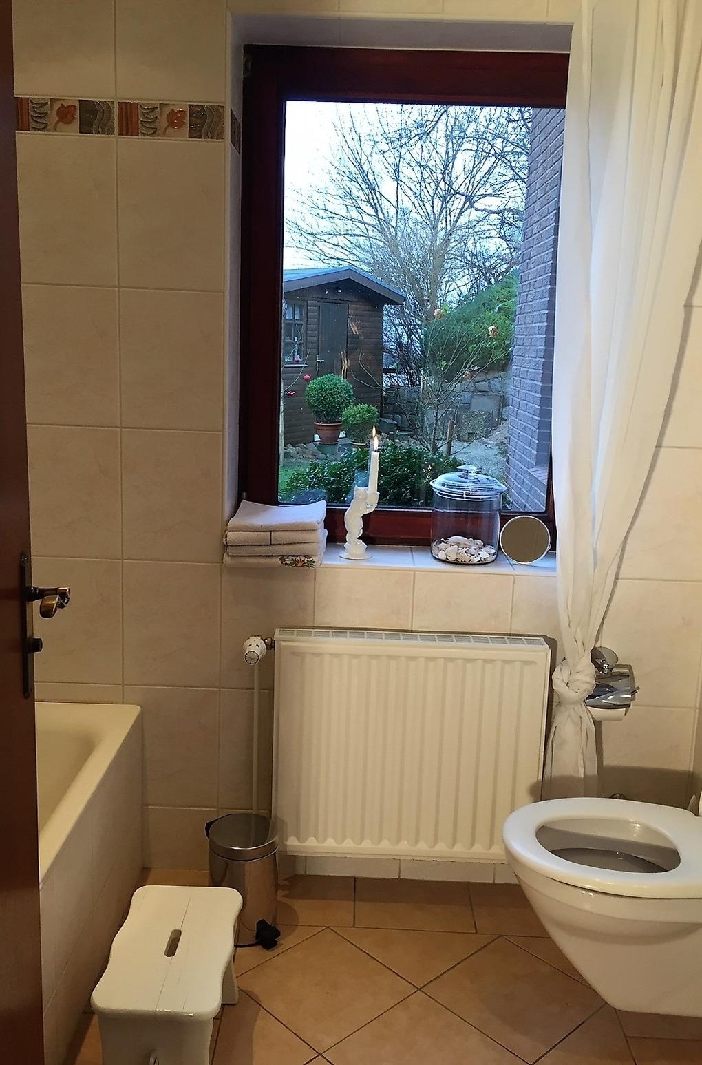 Leider ist die Wohnung nicht barrierefrei. 26 Stufen führen zum Eingang der Ferienwohnung Weitblick. Im Erdgeschoss liegen die Wohnküche, das Wohnzimmer und ein Badezimmer. Im ersten Obergeschoss befinden sich drei Schlafzimmer und ein weiteres Wannenbad.