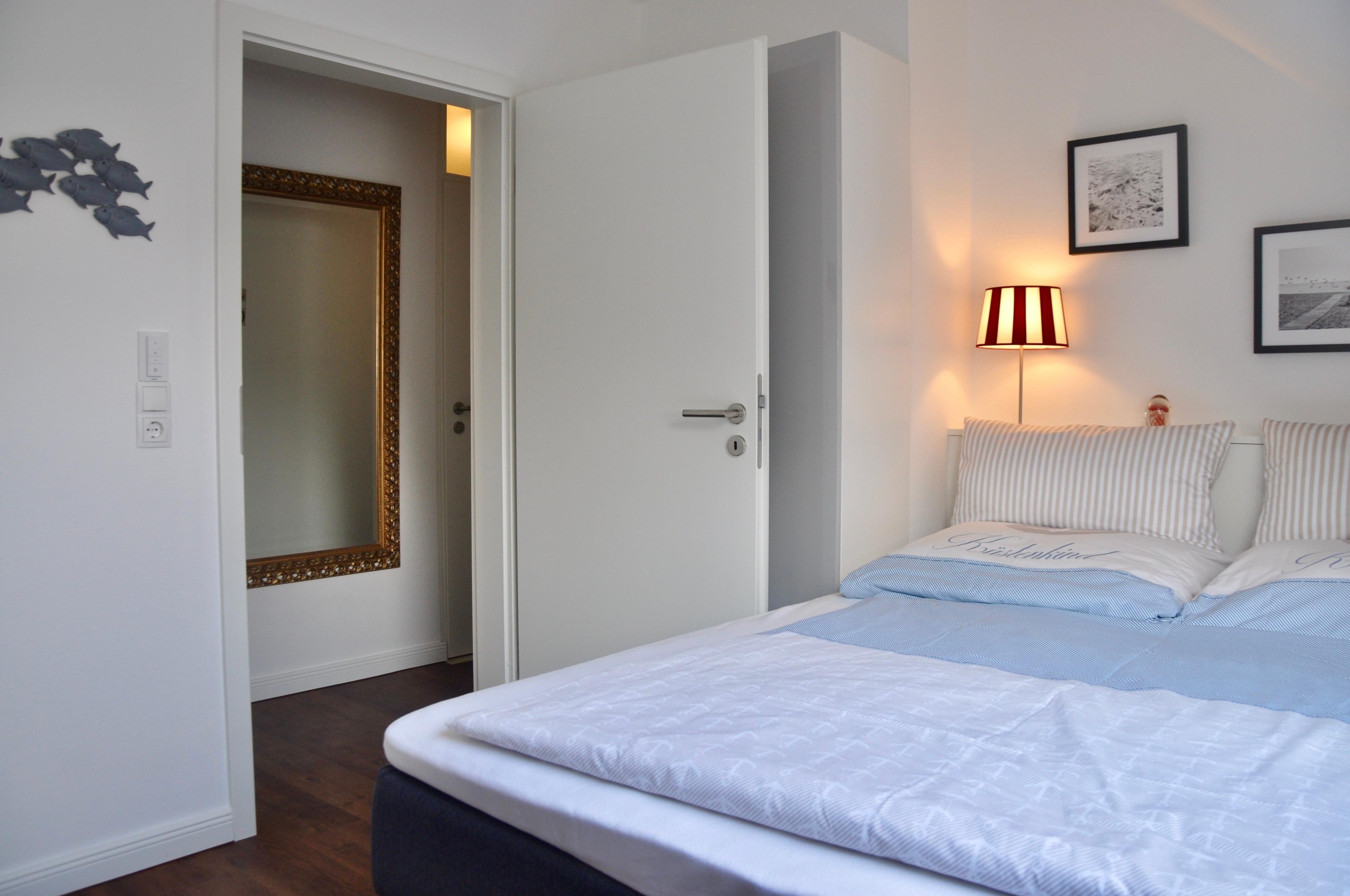 Innen erwarten Sie zwei Schlafzimmer mit komfortablen Boxspring-Betten der Marke SWISS SENSE (1x 160x200 cm, 1x 180x200 cm), ein Tageslichtbad mit Fußbodenheizung, großer separater Dusche und XL-Badewanne, sowie ein helles gemütlich eingerichtetes Wohnzimmer, mit allem was man sich zum relaxen wünscht.