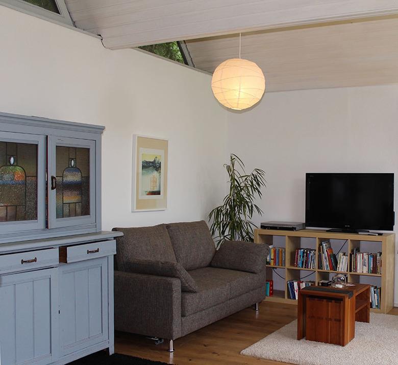 Das sonnendurchflutete Wohn-Ess-Zimmer verfügt über einen KAMIN und einen großen Esstisch sowie eine gemütliche Schlafcouch (Liegefläche 1,60 x 2m). Zahlreiche Spiele und ein großer Flachbildfernseher mit angeschlossenem DVD-Player stehen Ihnen zur Verfügung. Selbstverständlich haben Sie bei uns einen KOSTENLOSEN W-LAN ZUGANG.