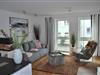 Im Wohnzimmer befindet sich ein 250cm breites Boxspring-Kuschelsofa, dass sich bei spontanem Besuch auch zu einer Schlafgelegenheit ausziehen lässt.