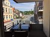 Von der überdachten, mit Mobiliar ausgestatteten Terrasse geniessen Sie den Blick auf den Hafen und auf die Kirche in Borby.