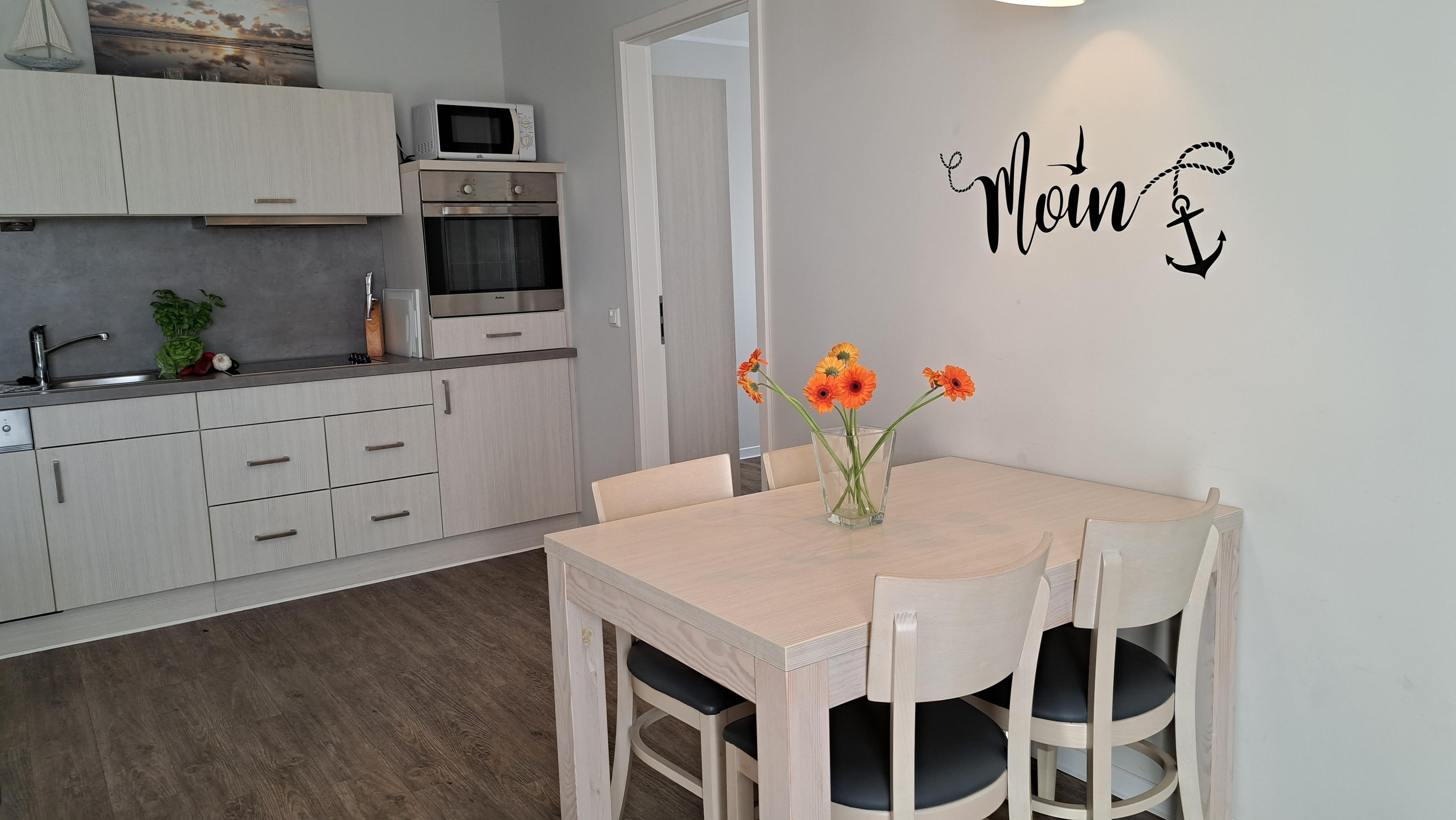 Das gut ausgestattete Apartment im 3 OG liegt in zentraler Lage mit Blick vom Balkon auf das Hafenquartier, die Innenstadt und den Binnenhafen. Auf dem Balkon können sie am späten Nachmittag und am Abend die Sonne genießen.