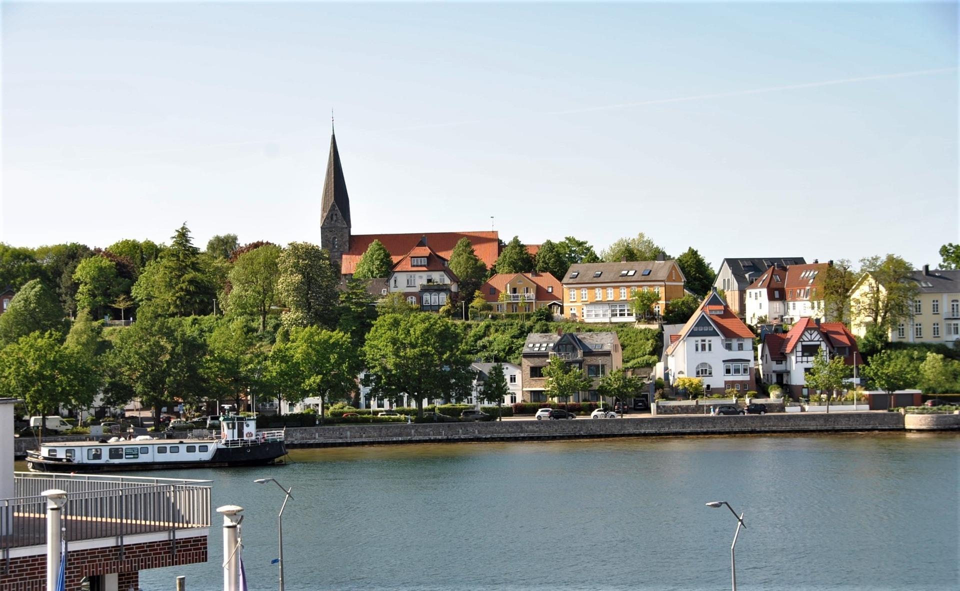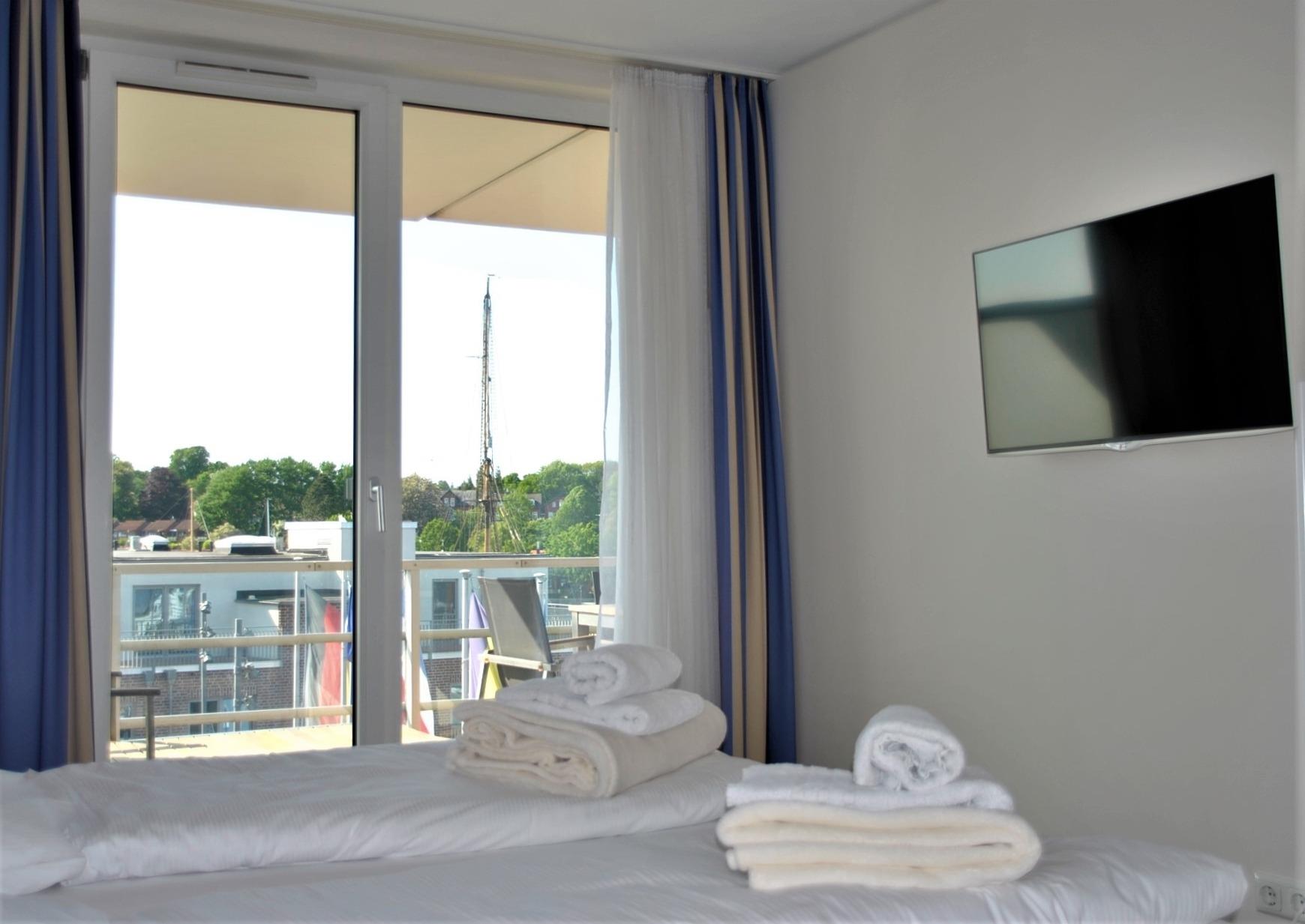 Durch die Südwestlage des großzügig bemessenen Balkons mit Sitz- und Liegemöglichkeiten genießen Sie den Blick vom dritten Obergeschoss auf den Eckernförder Hafen und die Borbyer Kirche.