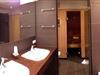 Das Badezimmer ist ausgestattet mit Doppelwaschbecken, Badewanne, ebenerdig gefliester Dusche und komfortabler Sauna. Das WC ist durch eine Sichtschutzwand abgetrennt. Sie müssen sich nicht mit den anderen Gästen die Münzwaschautomaten im Erdgeschoss teilen, sondern haben im Badezimmer Ihre eigene Waschmaschine zur kostenfreien Benutzung.