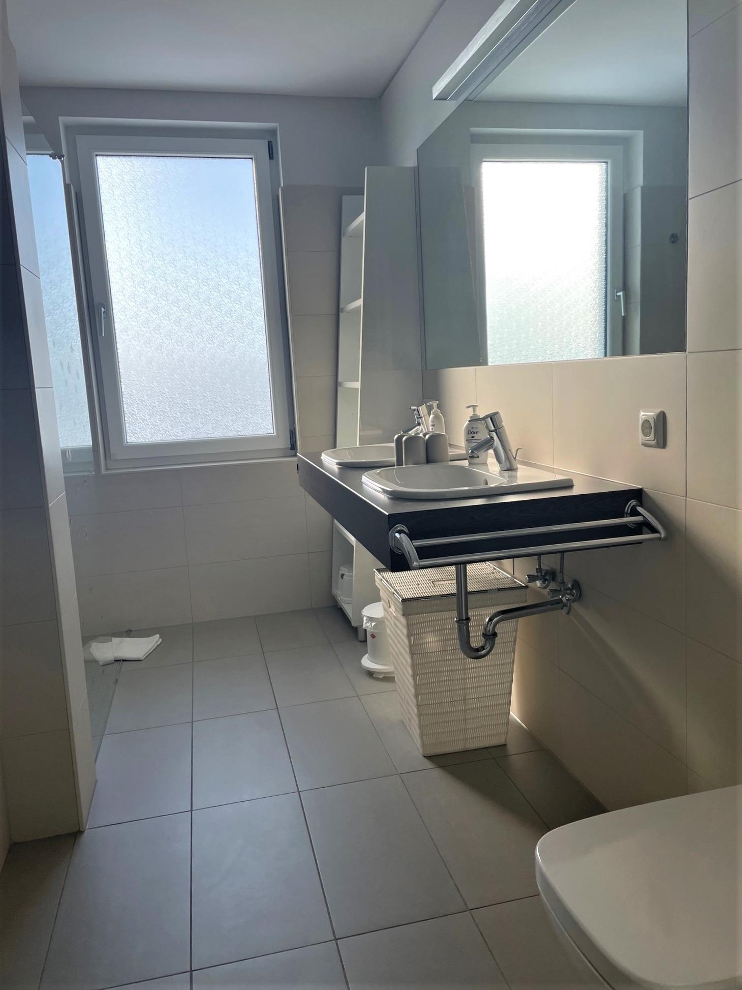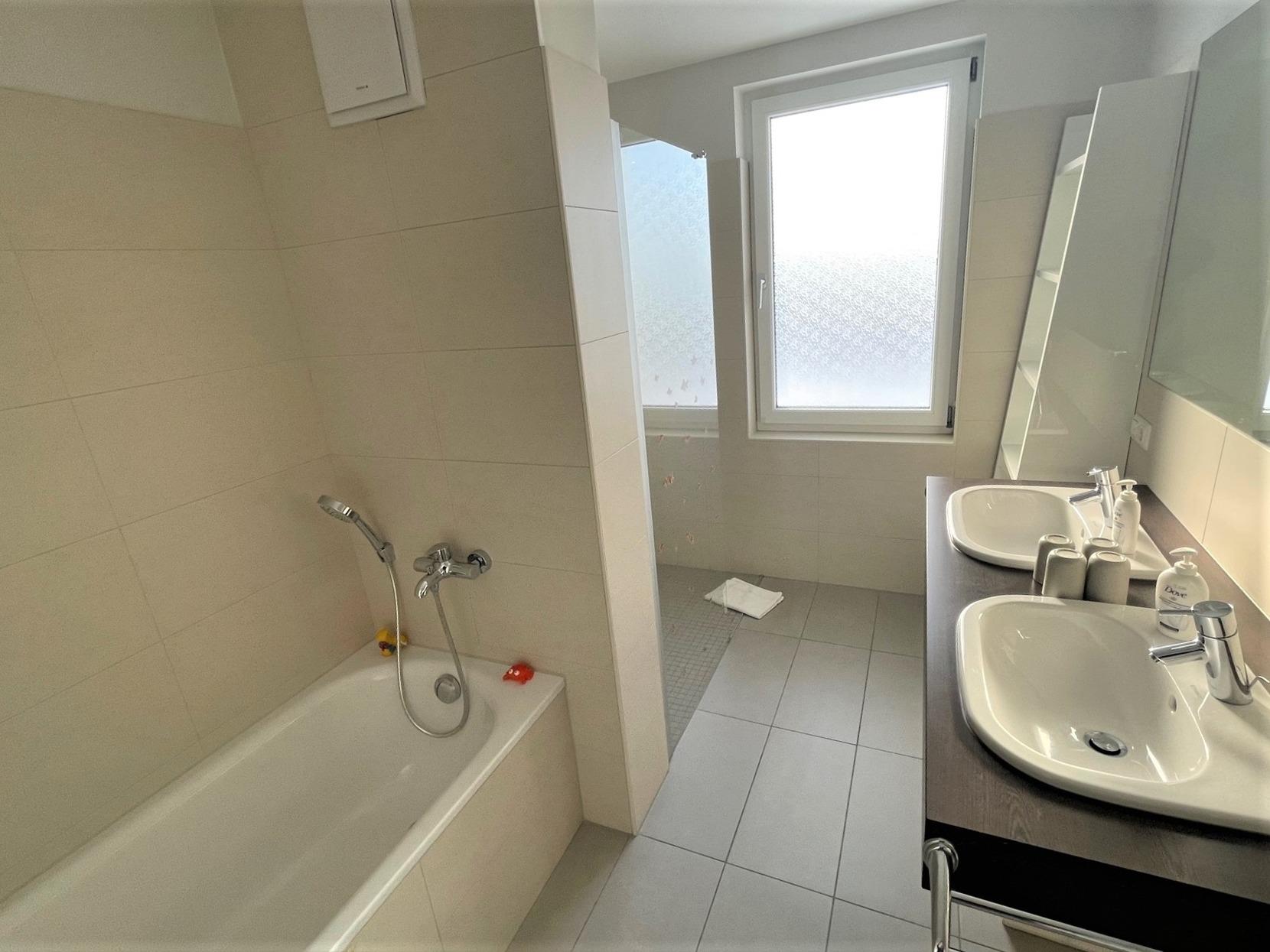 - Badezimmer mit Dusche und Badewanne - weitgehend barrierefrei