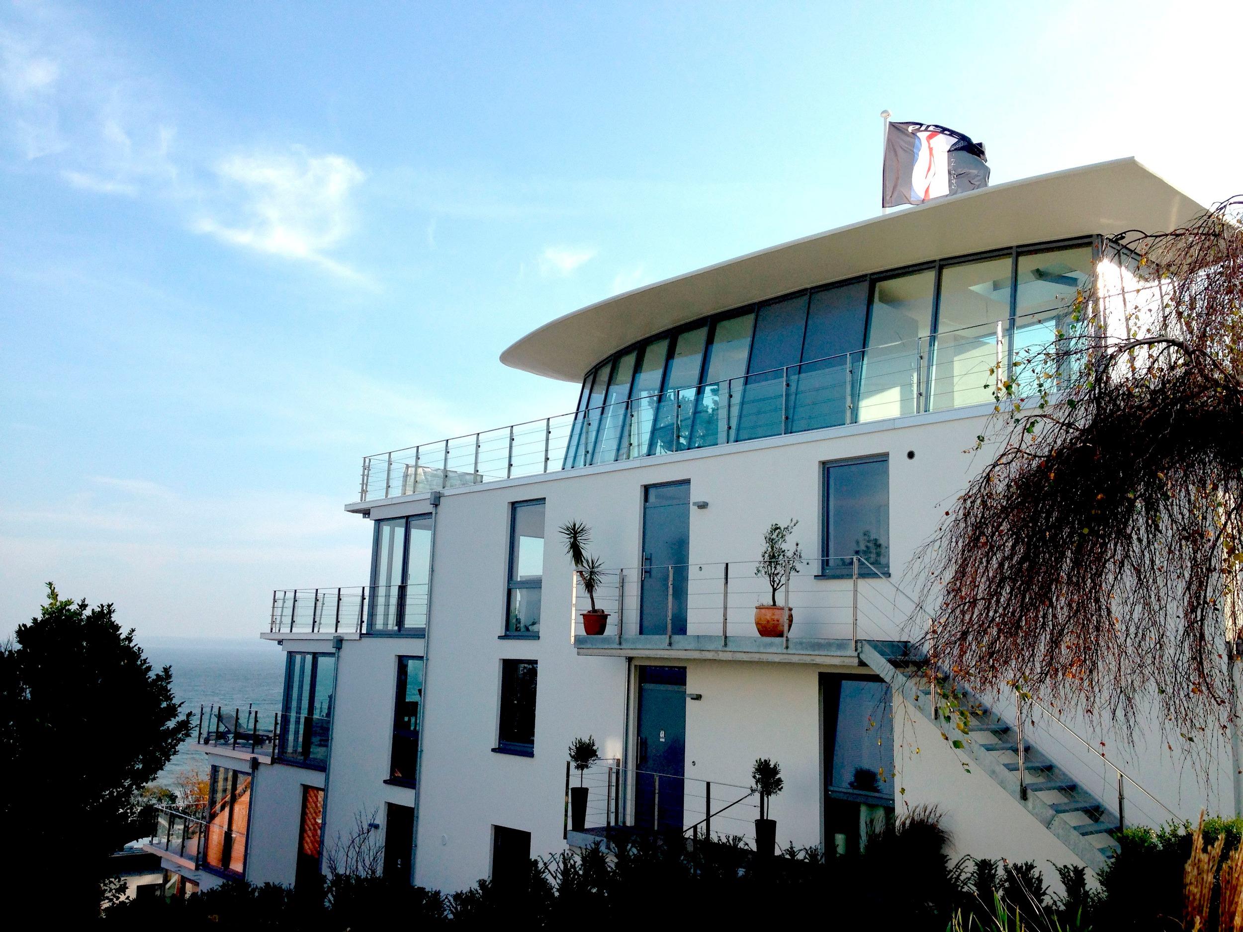 An den Wohnraum schließt sich auf gleicher Höhe eine großzügige Terrasse an, welche auf Grund der deckenhohen Fenster den Wohnraum optisch nach draußen erweitert. Dieser Effekt wird durch die großzügige Seitenverglasung noch verstärkt. Öffnen Sie einfach eine der Panoramascheiben und genießen die frische Meeresluft und das großartige Raumgefühl.