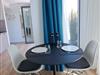 Eine voll ausgestattete, moderne Küche fügt sich offen in den kombinierten Wohn- und Essbereich ein, die Sitzecke mit dem Flachbildschirm und dem Esstisch laden zum Entspannen und Geschichten erzählen ein.