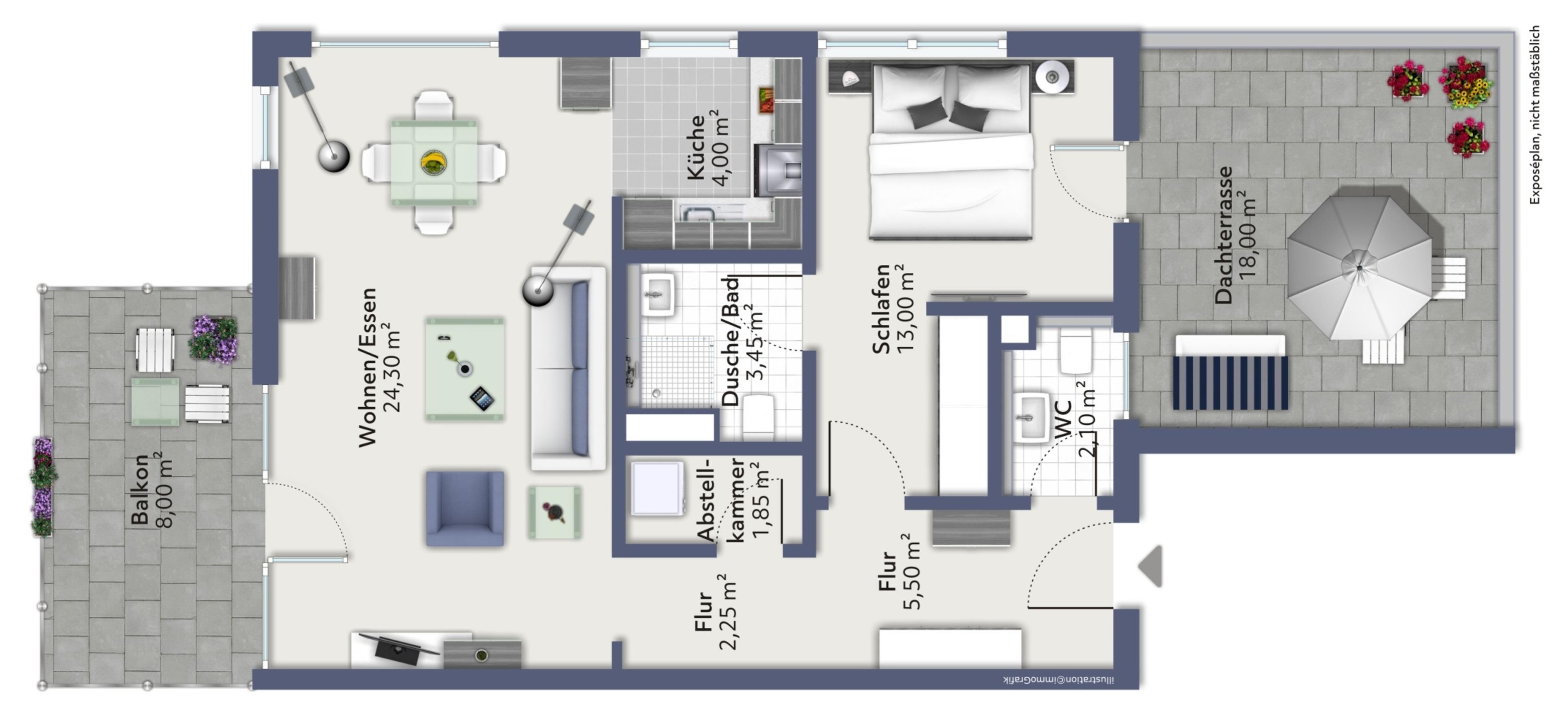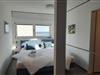 Einzigartig bei dieser Ferienwohnung - aus allen Räumen mit Blick aufs Wasser. Sie verfügt eine Sonnenterrasse (Südseite) mit MEERBLICK und über Balkon (Nordseite) mit Blick auf das Hafenbecken. Von beiden Seiten aus können Sie sowohl das Flanieren der Spaziergänger als auch die Veranstaltungen am Hafen von oben betrachten und den Blick genießen und weit schweifen lassen. Der offene und helle Wohn- und Essbereich, mit voll ausgestatteter Küche, lädt zum Entspannen und Kochen ein. Ein großer TV Bildschirm hängt an der Wand, so dass von allen Seiten darauf geschaut werden kann. Vom Wohnzimmer aus betreten Sie den Balkon mit dem fantastischen Blick über die Hafenpromenade und dem Hafenwasserbecken. Zu Zeiten der Aalregatta im Sommer können Sie die Segelboote vorbeiziehend betrachten. Das Schlafzimmer wurde mit einem modernen Boxspringbett (180x200), mit sehr großen TV -Bildschirm an der Wand und einem großzügigen Kleiderschrank mit Spiegelfront eingerichtet. Vom Schlafzimmer aus betreten Sie die Sonnenterrasse mit Meerblick, mit einem großem Strandkorb, Terrassenmöbeln und einem Sonnenschirm ausgestattet. Das Badezimmer on Suite ist mit ebenerdiger Dusche, einem WC und einem Waschbecken mit Schubladen ausgestattet. Zusätzlich haben Sie im Eingangsbereich mit dem Gäste-WC eine weitere Toilette. Der Flur ist mit viel Platz großzügig geschnitten. Für den längeren Aufenthalt stehen Ihnen in der Abstellkammer der Wohnung eine Waschmaschine und ein Trockner zur Verfügung. Die Fußböden der gesamten Wohnung sind mit Steinfliesen und komplett mit einer Fußbodenheizung durchzogen. Die im 2. Stock des Appartementhauses gelegene Ferienwohnung kann ''barrierefrei'' über einen Aufzug, mit direktem Zugang aus der Tiefgarage erreicht werden. Die Symbole vom Wohngrundriss können in der Darstellung von der tatsächlichen Innen- und Außengestaltung der Wohnung abweichen!