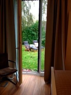 dicht bewachsenen Garten. Die beiden Schlafzimmer lassen sich durch Vorhänge