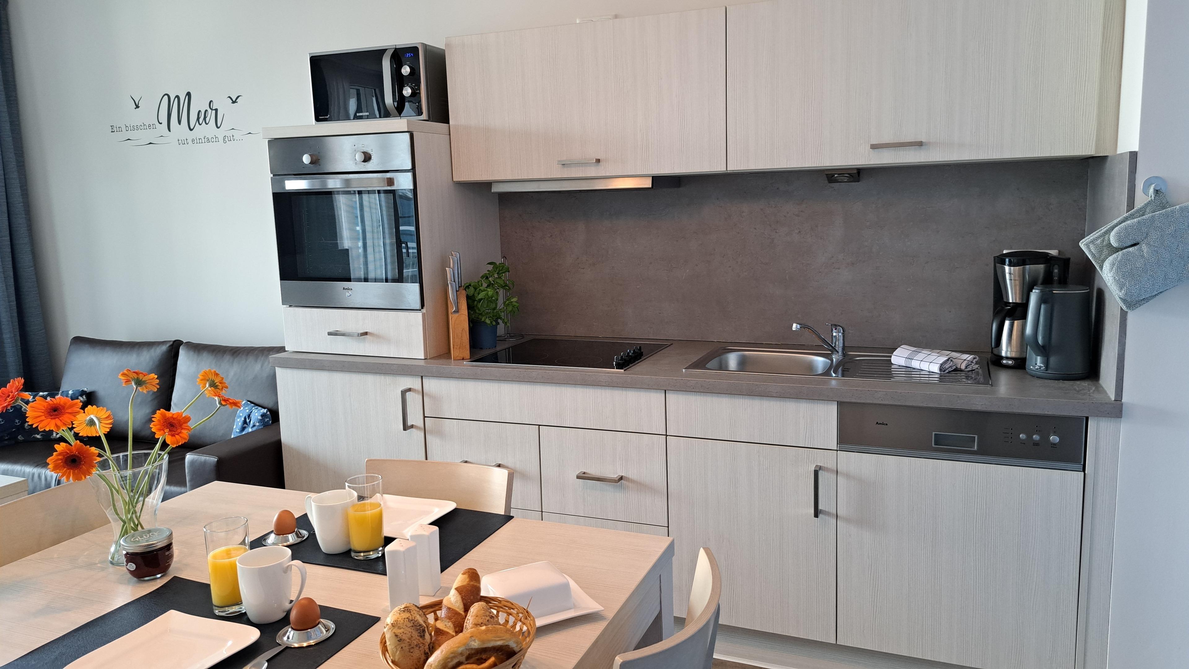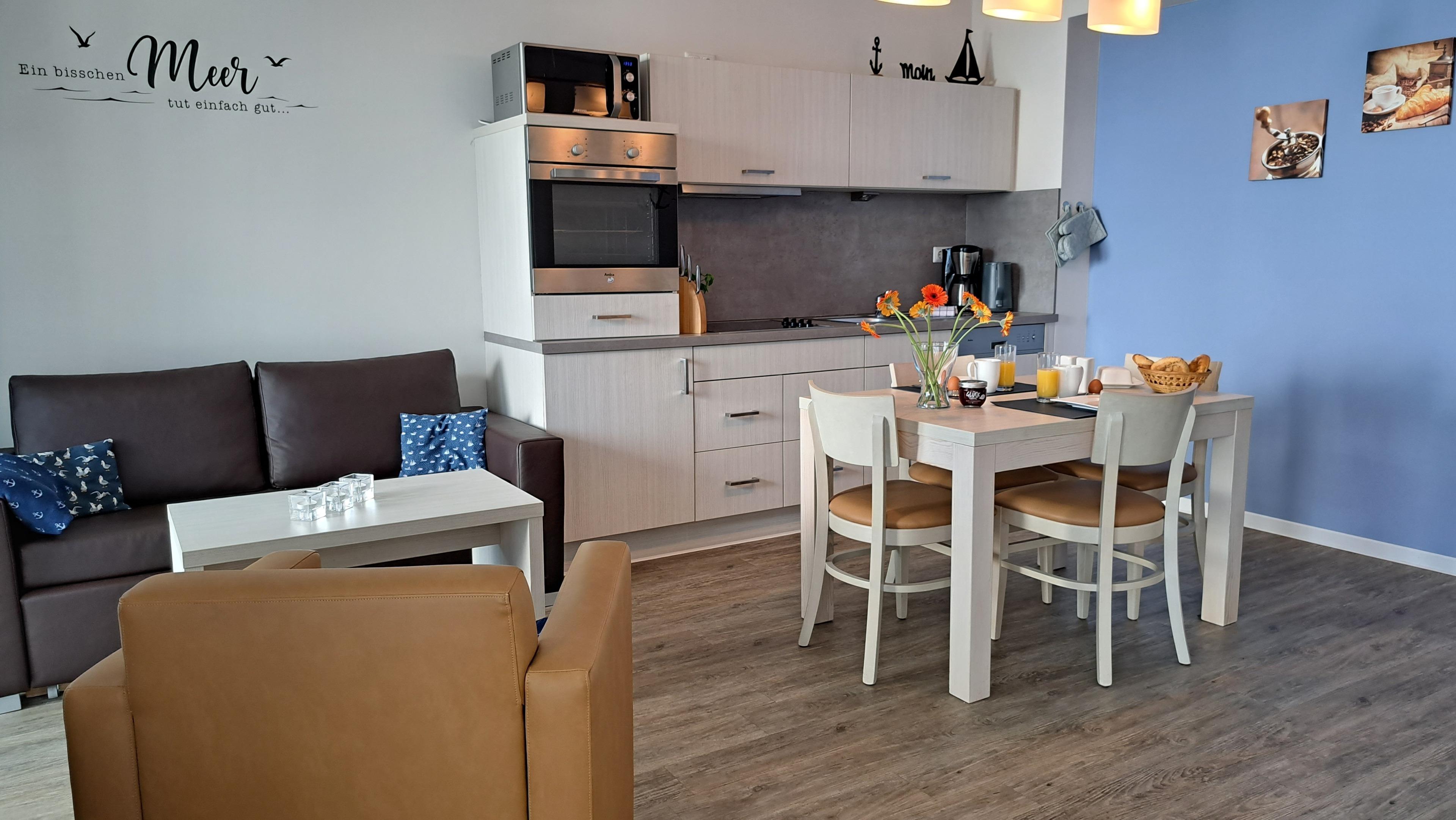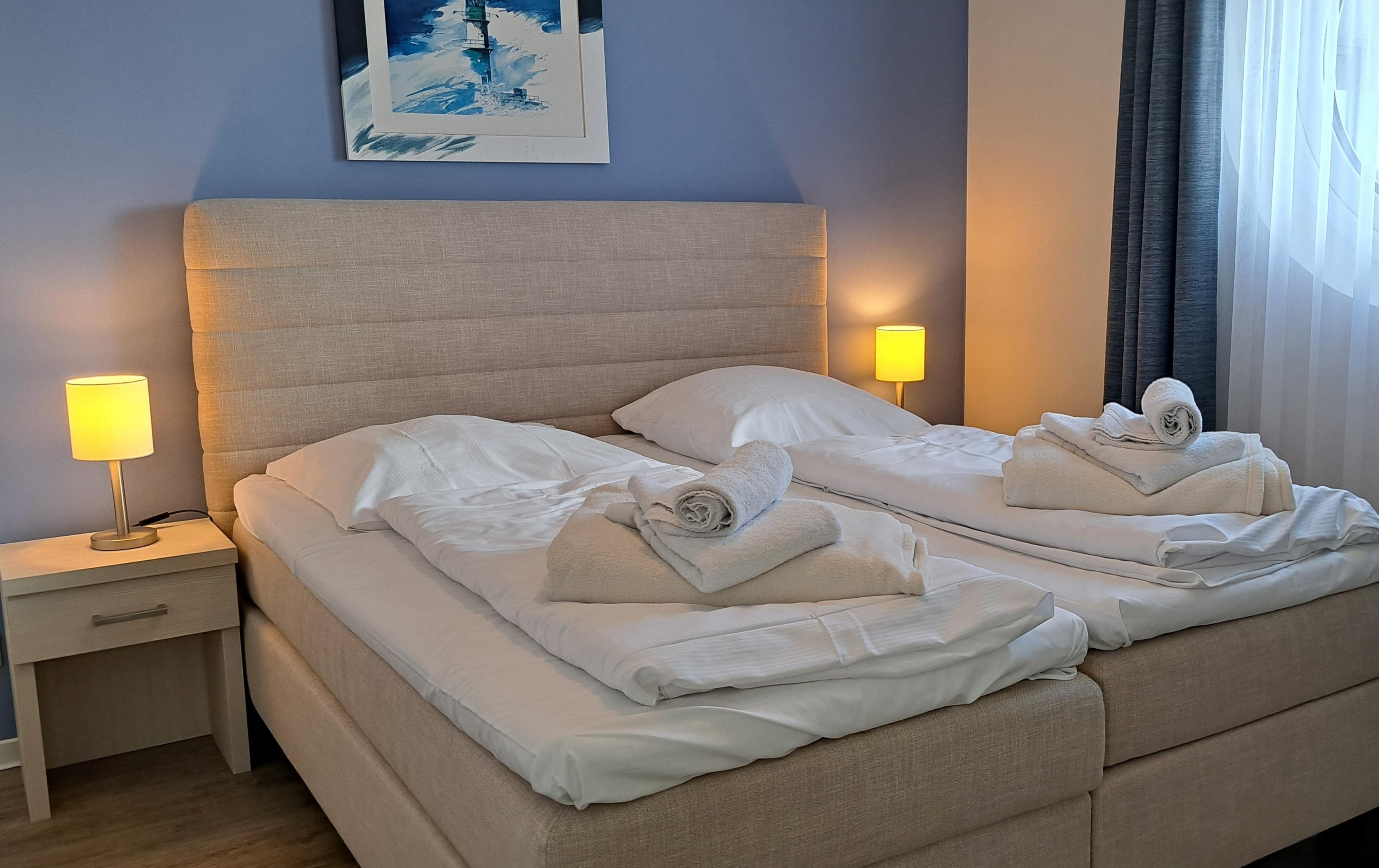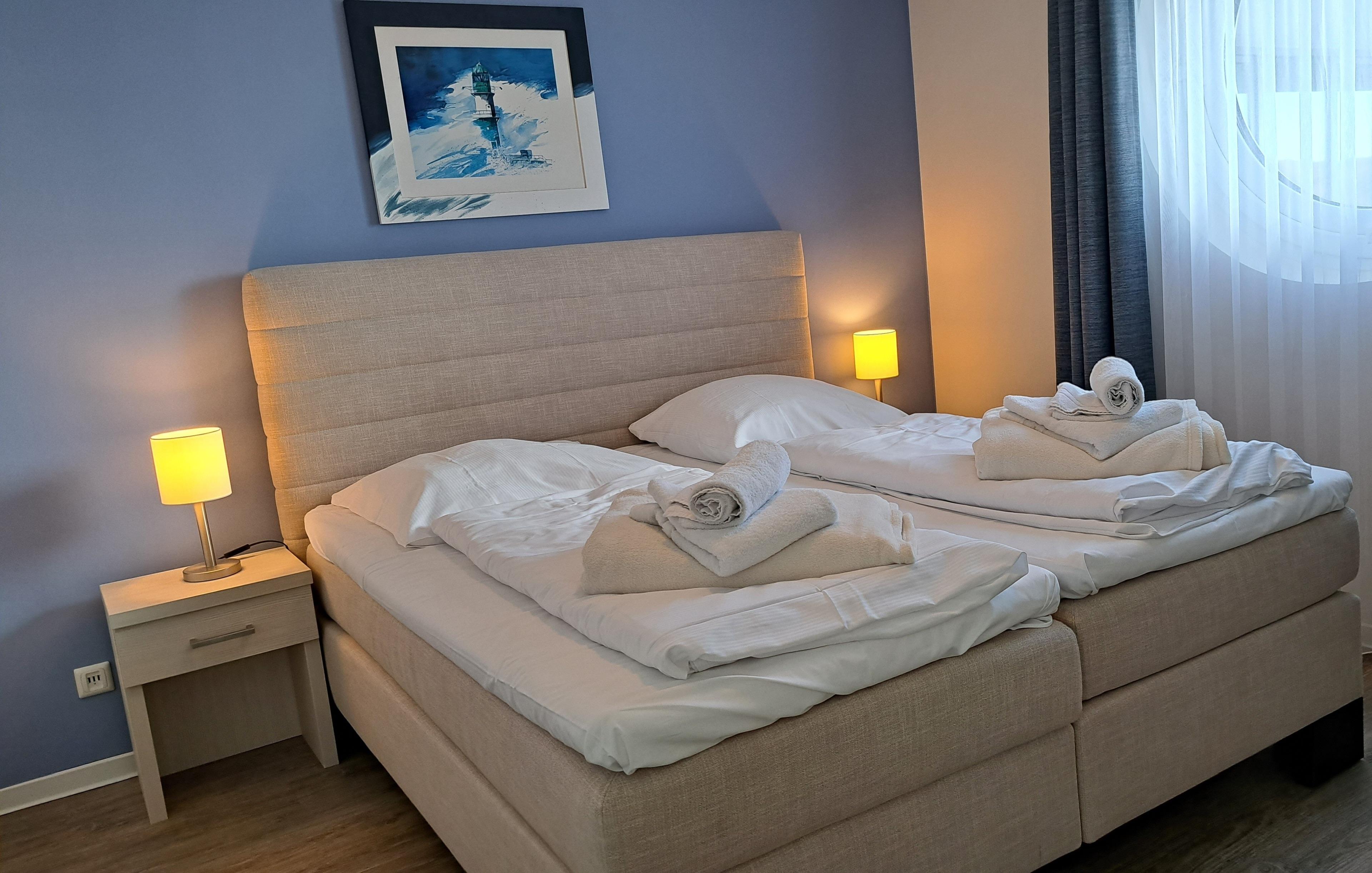 In Ihrem modern eingerichteten Apartment werden Sie sich von der ersten Sekunde an wohlfühlen. Für besten Komfort sorgen zum Beispiel Boxspringbetten, ein eigener PKW-Stellplatz, ein Fahrstuhl sowie Waschmaschine und Trockner im Haus. Das Apartment wird mit Ökostrom betrieben.