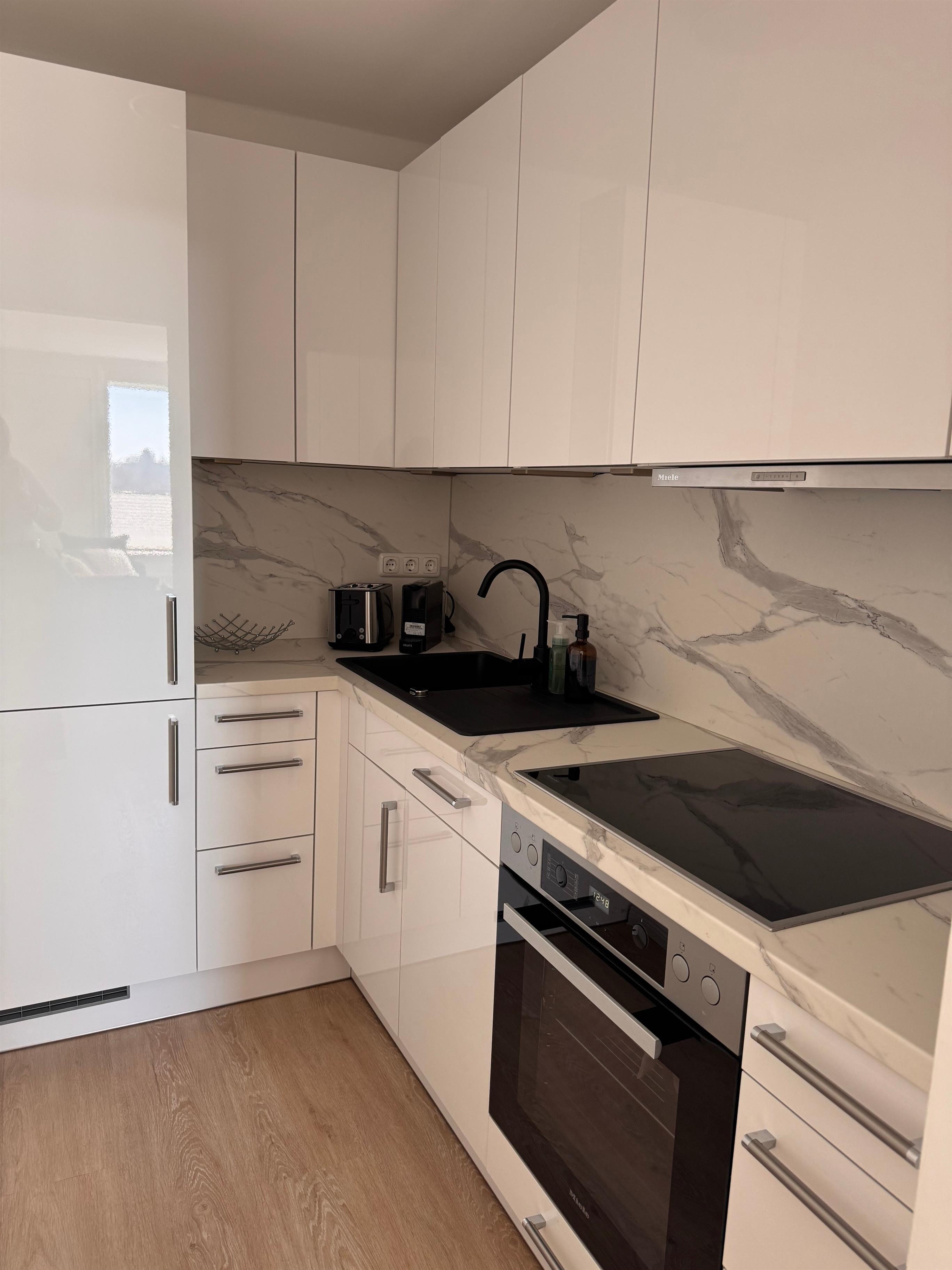 Die Ausstattung wurde mit viel Liebe zum Detail zusammengestellt. Die neue Küche, die Anfang 2025 eingebaut wurde, ist mit hochwertigen Miele-Geräten ausgestattet. Im Badezimmer steht eine Waschmaschine der Marke AEG zur Verfügung. Das Schlafsofa kann ausgezogen werden und bietet eine komfortable Schlafmöglichkeit. Die Betten sind mit hochwertigen Schlaraffia-Matratzen ausgestattet.
