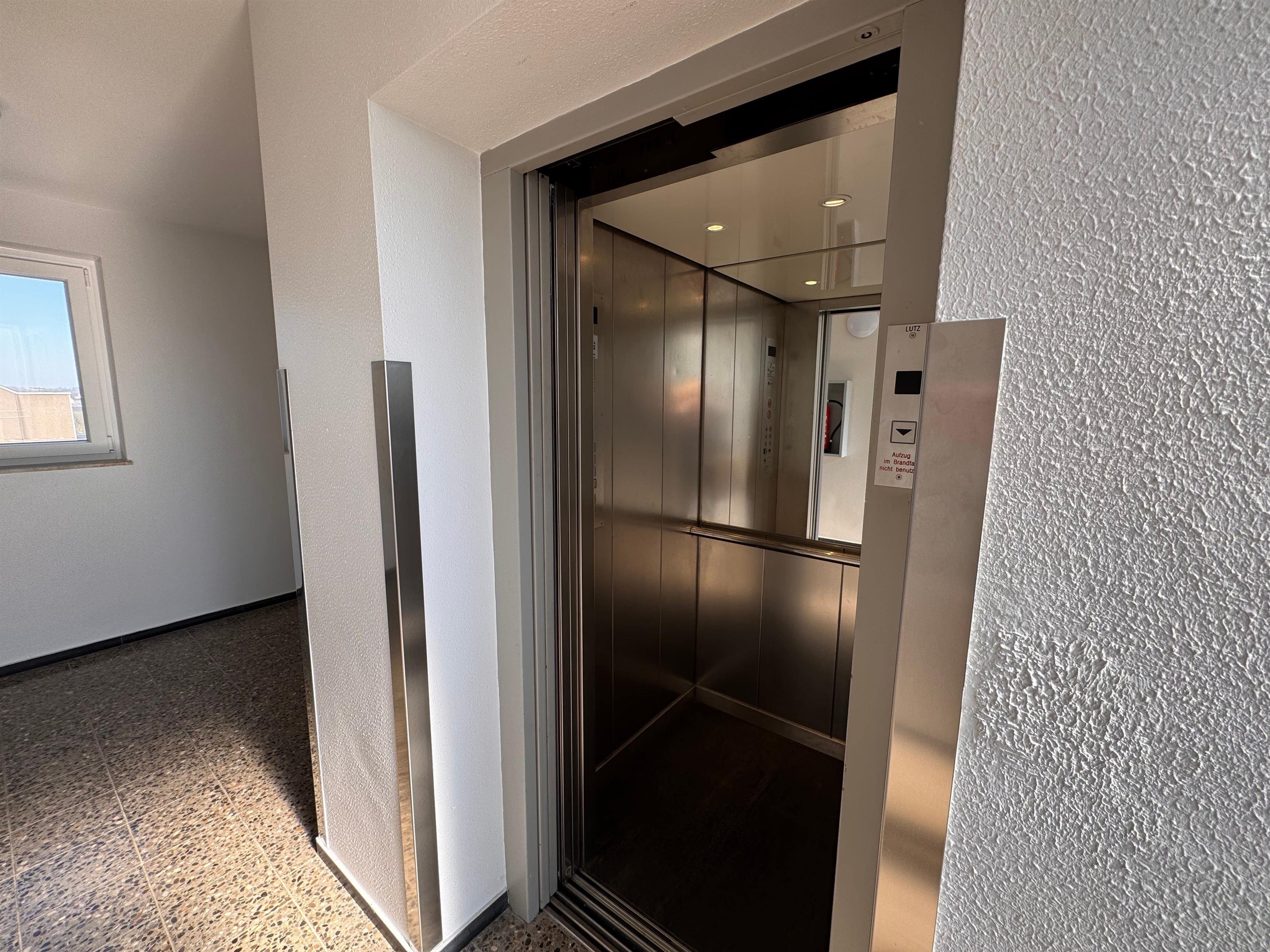 Im Gebäude befinden sich zwei Fahrstühle, ein großer und ein kleiner, sodass die Wohnung bequem erreichbar ist.