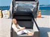 Sie können sich vor Wind und Regen durch einen imprägnierten Schutzbezug - einer sogenannten Persenning - schützen. Fenster garantieren den Rundum-Blick auf Meer, Strand und Sterne.
