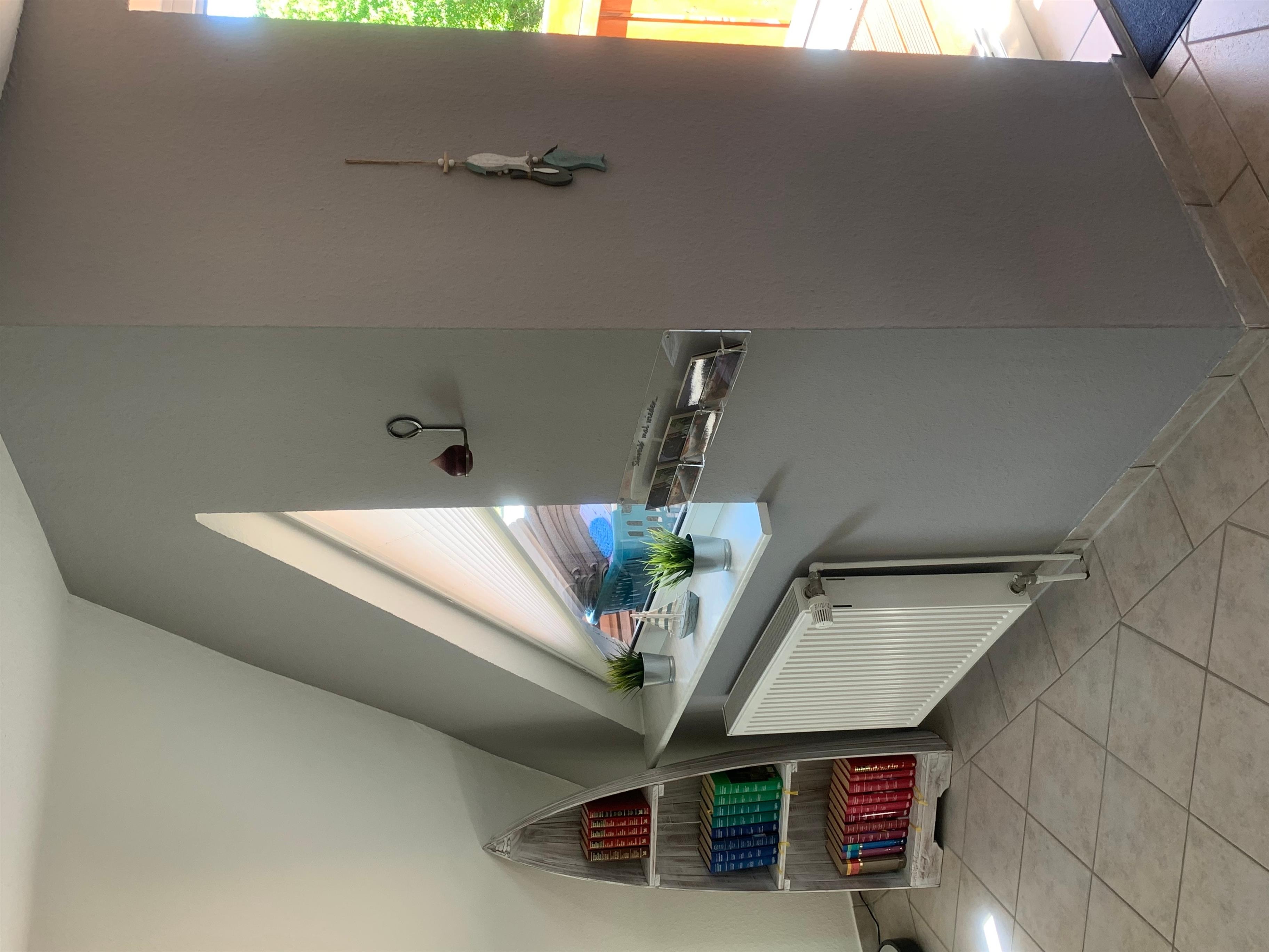 In der Flurabseite, hinter dem Vorhang, befinden sich ein Schuhregal, Putzutensilien sowie der Wäscheständer, Handstaubsauer, Ventilator, Bügelbrett und Bügeleisen. Hier lagert auch der Sonnenschirm und das Bettgitter für unsere kleinen Gäste. Ein Babybett für die Allerkleinsten und einen Kinderhochstuhl erhalten Sie von uns kostenfrei bei Bedarf zur Verfügung gestellt. Für das Babybett bringen Sie bitte Bettwäsche und Bettbezüge selbst mit. Diese haben wir nicht vorrätig.