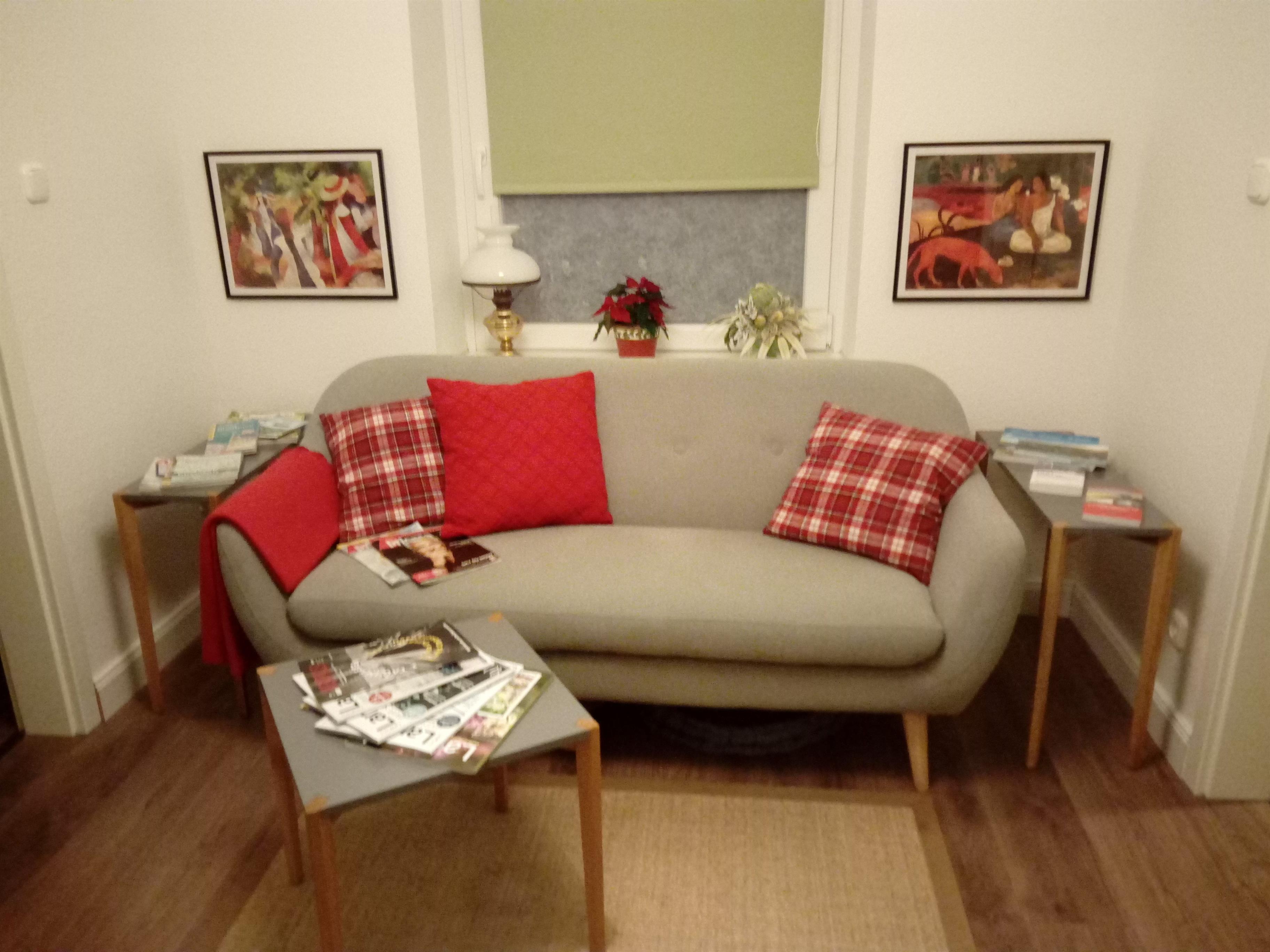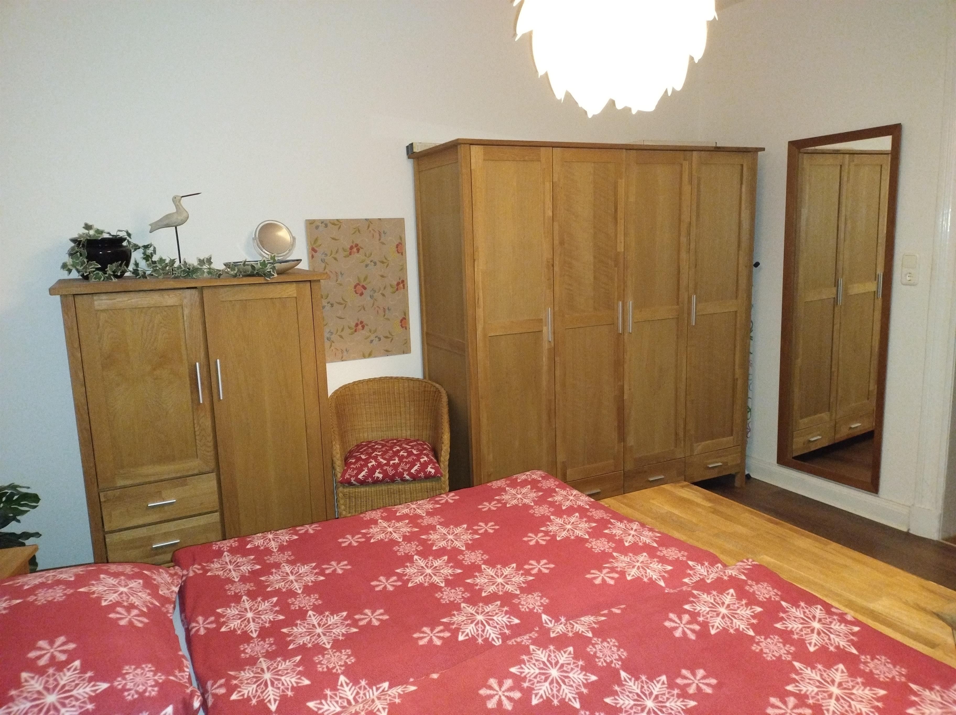 Im modern ausgestatteten Schlafzimmer können Sie vom 2 x 2m großen Boxspringbett aus fern- oder DVD sehen oder einfach nur entspannen. Bei Bedarf steht ein weiteres Einzelbett im Durchgang zum Bad und Hof gegen Aufpreis zur Verfügung. Für Leseratten gibt es ein gemütliches Sofa im kleinen Wohnzimmer. Die gut ausgestattete Küche lädt zum
