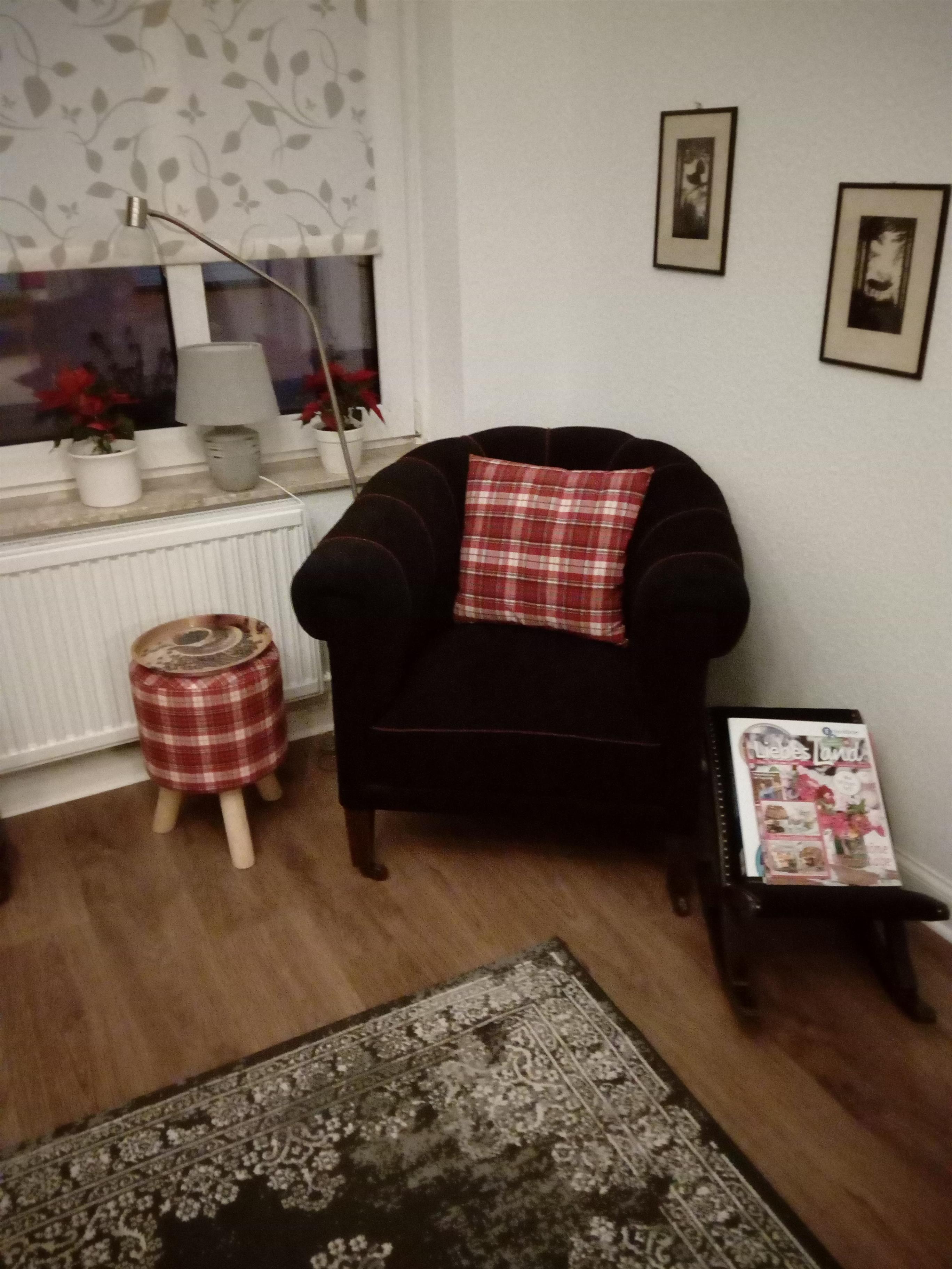 Im Original-Esszimmer des vormaligen Räuchereibesitzers Johannes Büll lässt sich an verregneten Tagen gut in den ausladenden Clubsesseln "chillen" oder am großen Eichentisch spielen, sei es mit dem Tablet (WLAN vorhanden), sei es "Mensch ärgere dich nicht" (div. Spiele vorhanden).