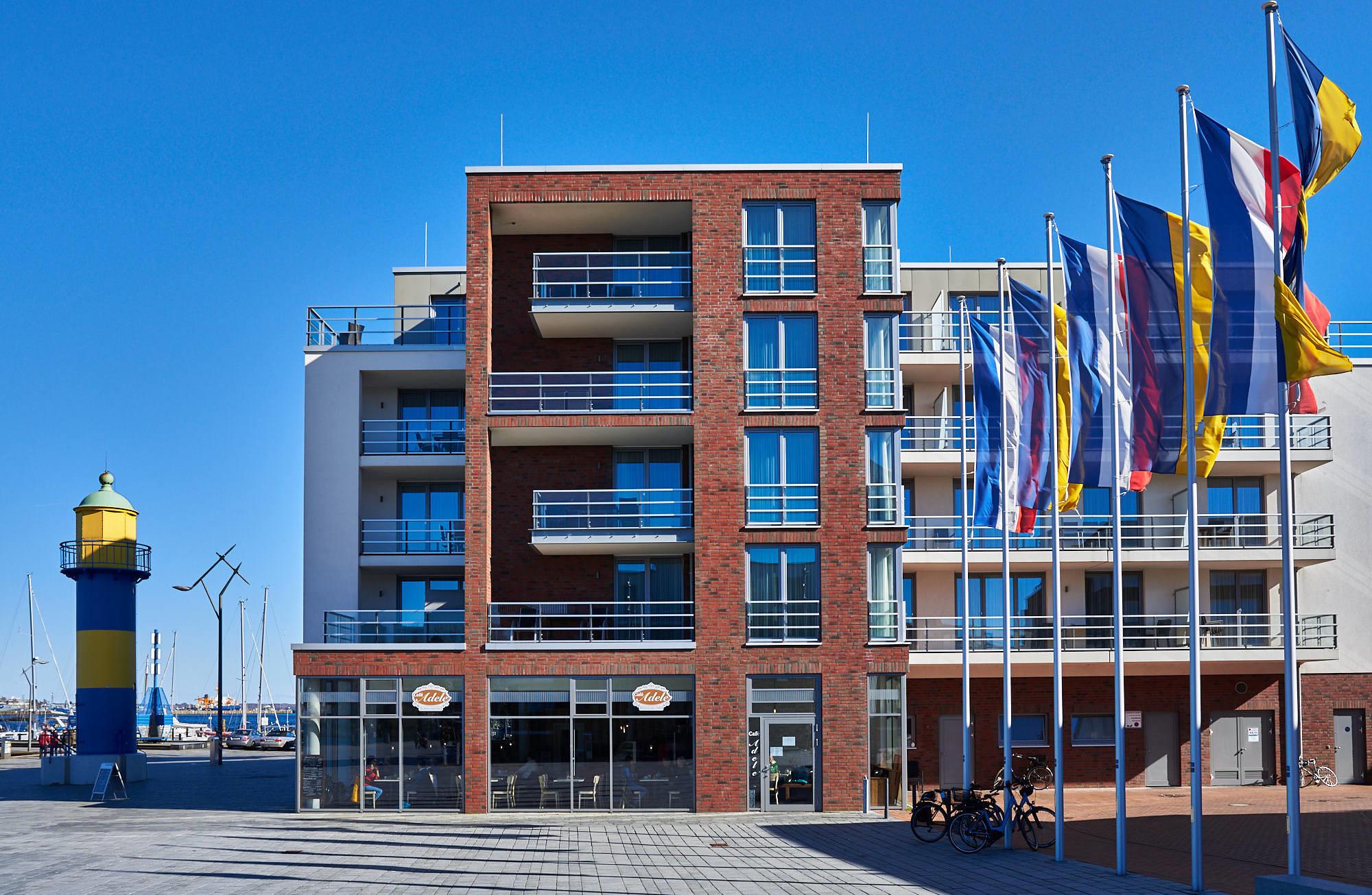 Genießen Sie durch die bodentiefen Fenster oder vom Balkon aus, den weiten Blick über die Hafenpromenade mit Wasserblick. Der gemütliche, modern eingerichtete Wohn- und Essbereich, mit voll ausgestatteter Küche, la¨dt zum gemeinsamen Entspannen und Kochen ein! Die Ferienwohnung verfügt über einen Balkon mit wunderschönem Blick auf das Hafenbecken. Das Schlafzimmer wurde mit zwei Einzelbetten (90x200), einem Kleiderschrank und einem TV-Gerät ausgestattet und bietet somit die gewünschte Erholung! Das Schlafsofa im Wohnzimmer bietet zudem U¨bernachtungsmo¨glichkeiten fu¨r 2 weitere Personen. Die Dusche im Badezimmer ist ebenerdig. Die komplette Wohnung ist mit Vinylboden und Fußbodenheizung ausgestattet. Die im 2. Deck des Appartementhauses gelegene Ferienwohnung kann über das Treppenhaus oder einem Aufzug erreicht werden. Die Symbole vom Wohngrundriss können in der Darstellung von der tatsächlichen Innen- und Außengestaltung der Wohnung abweichen!