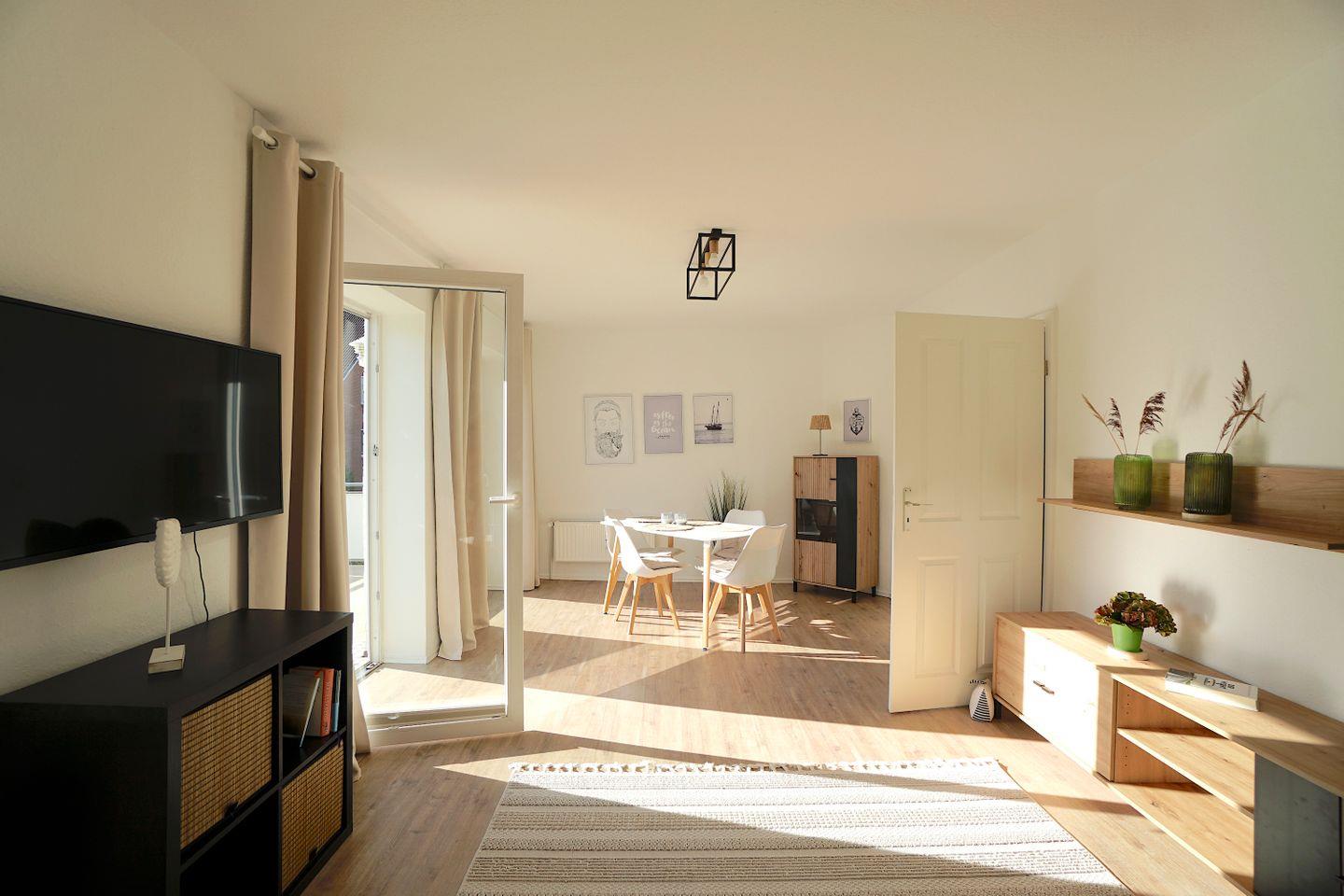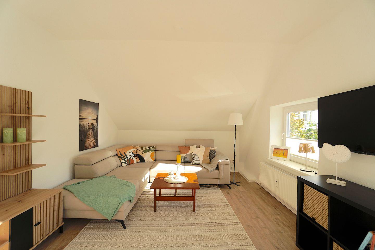 Im ersten OG des Mehrfamilienhauses liegt die lichtdurchflutete Ferienwohnung Krabbe.