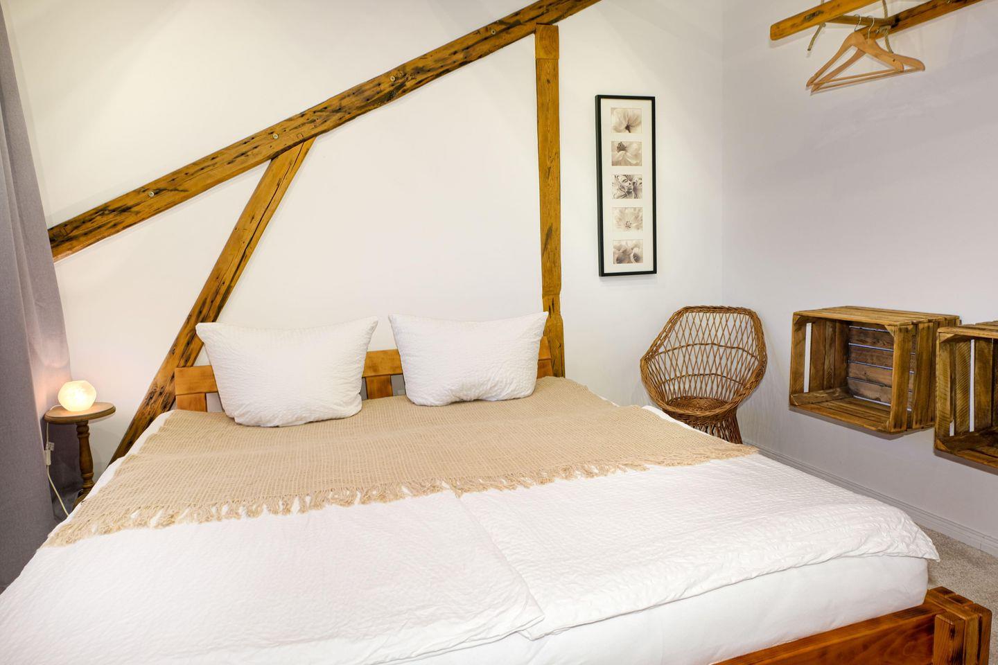 Diese hochwertig sanierte Ferienwohnung im Obergeschoss überzeugt durch ihr stimmiges Design mit natürlichen Holzelementen, Fußbodenheizung und gemütlicher Einrichtung. Voll ausgestattete Küche, schnelles WLAN (100 MBit) und Self-Check-in bieten besten Komfort – ideal für Urlaub oder Business. Terrasse, Parkplatz und Nähe zur Innenstadt runden das Angebot ab.