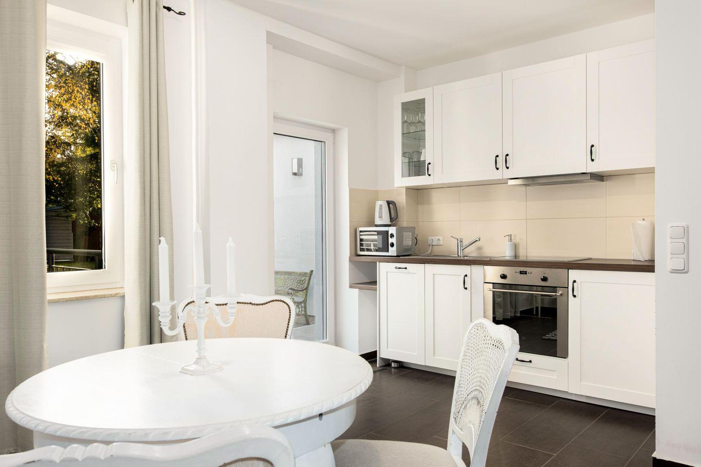 Die angebotene Ferienwohnung besticht durch hochwertige Verarbeitung und eine gehobene Ausstattung wie z.B. Fußbodenheizung in allen Räumen, dreifachverglaste Schallschutzfenster, Fliesen im gesamten Wohnbereich, Einbauküche mit Geschirrspüler, Backofen, Kühlschrank und diversen Küchenutensilien.