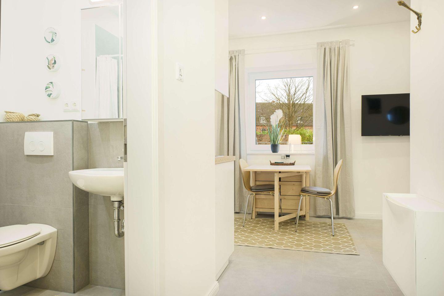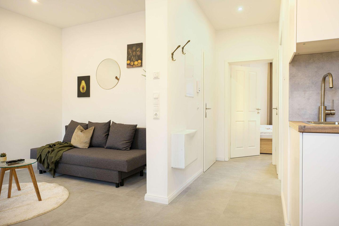 Die Unterkunft liegt in einem schicken Haus mit mehreren Wohneinheiten. Durch den eigenen Zugang und den selbständigen Check-In und Check-Out per Schlüsselbox genießt Du alle Freiheiten.