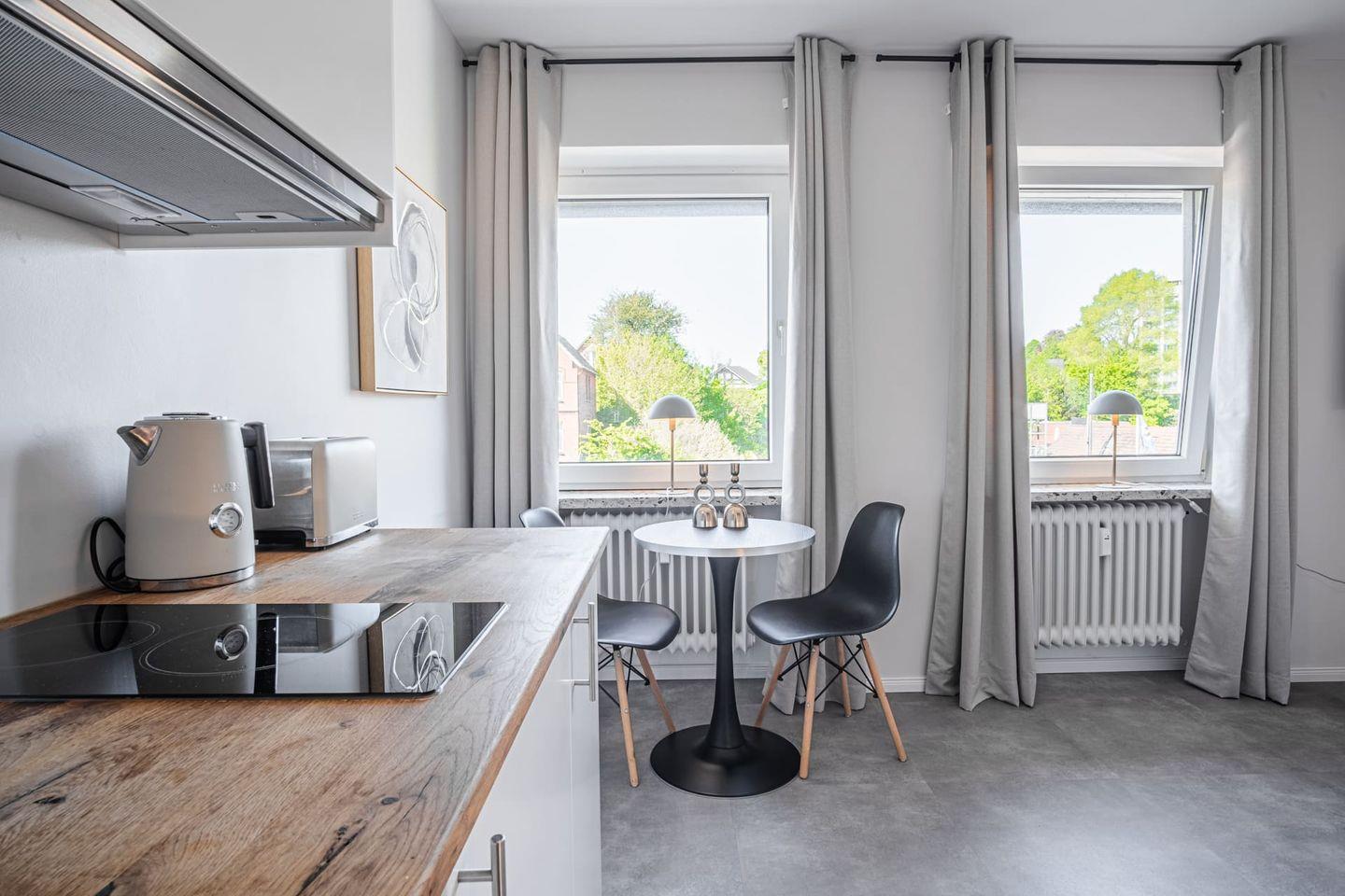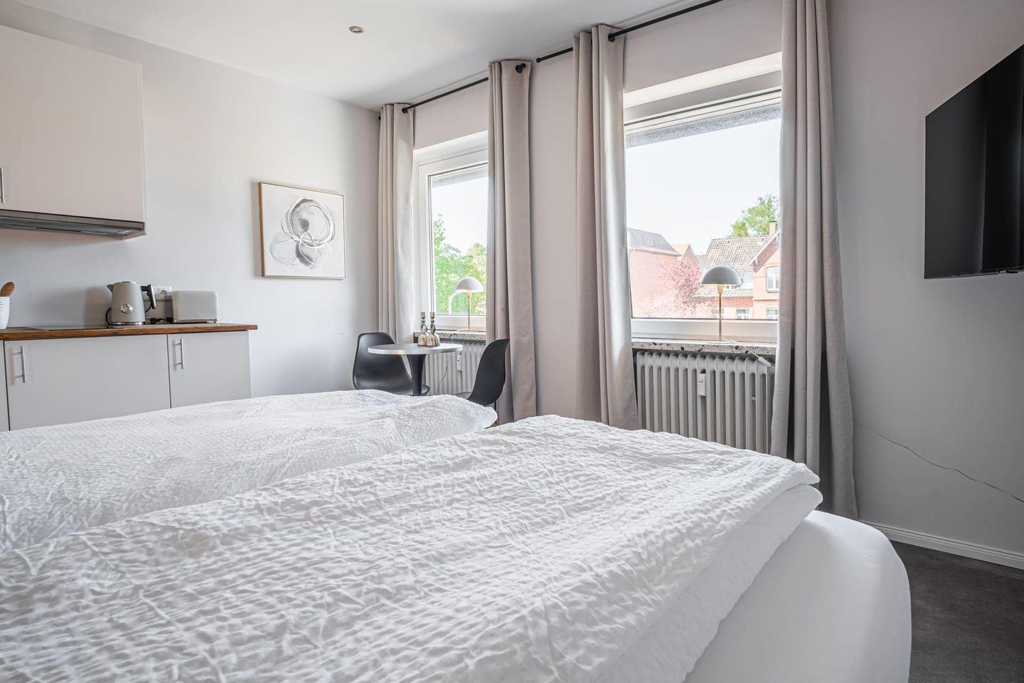 Zentral gelegene Ferienwohnung in Eckernförde – nur wenige Gehminuten vom Strand und der Innenstadt entfernt. Ideal für Arbeit und Erholung: mit WLAN, Streaming-TV, kleiner Küche und gemütlichem Bett. Hochwertige Ausstattung, moderne Einrichtung und Self-Check-in per Schlüsselbox bieten Komfort und Flexibilität für einen entspannten Aufenthalt.