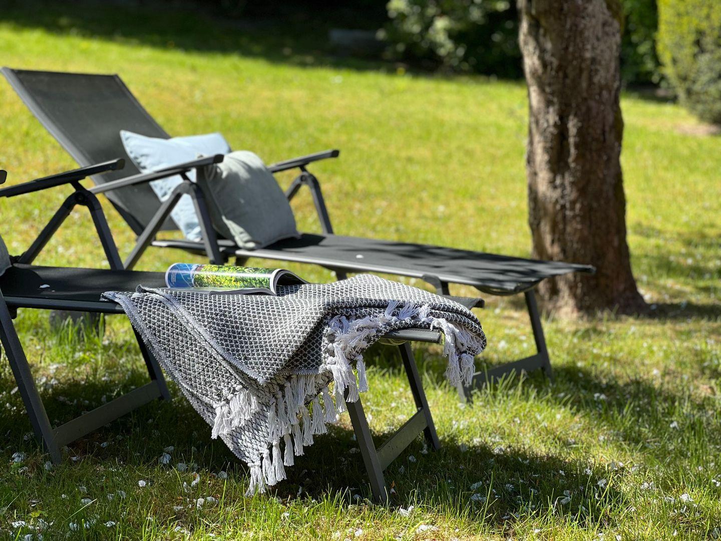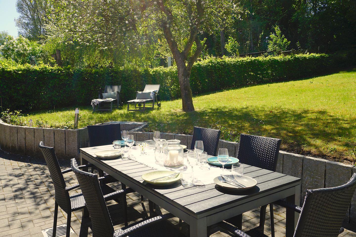 Besonders hervorzuheben ist der großzügige Außenbereich: Ein privates, abgeschlossenes Grundstück von 461 m² beherbergt einen schönen Garten, in dem Kinder ungestört spielen können. Hier findet ihr Sonnenliegen, Gartenmöbel und eine Terrasse, die zu gemütlichen abendlichen Barbecues einlädt. Der Elektrogrill sorgt für entspannte Grillabende unter freiem Himmel, ganz nach dem Motto: „Urlaub genießen!“