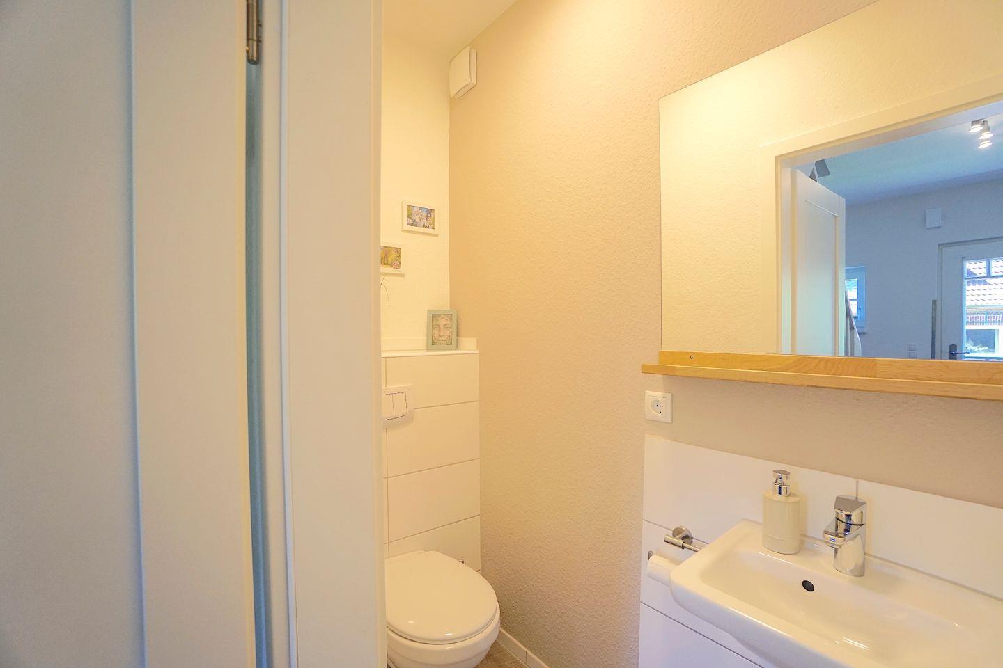 Das Ferienhaus verfügt über drei Schlafzimmer, die eine ruhige Atmosphäre zum Entspannen bieten. Egal ob ihr mit Familie oder Freunden reist, die Vielfalt an Schlafmöglichkeiten stellt sicher, dass jeder seinen Rückzugsort findet. Darüber hinaus ist das Badezimmer mit einer bodengleichen Dusche sowie einem Gäste-WC ausgestattet, was den Aufenthalt besonders komfortabel macht.