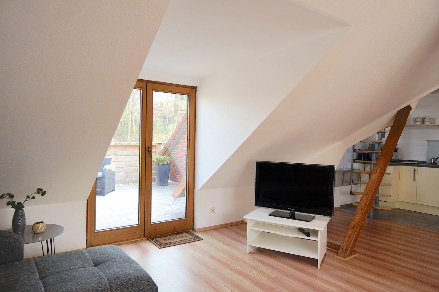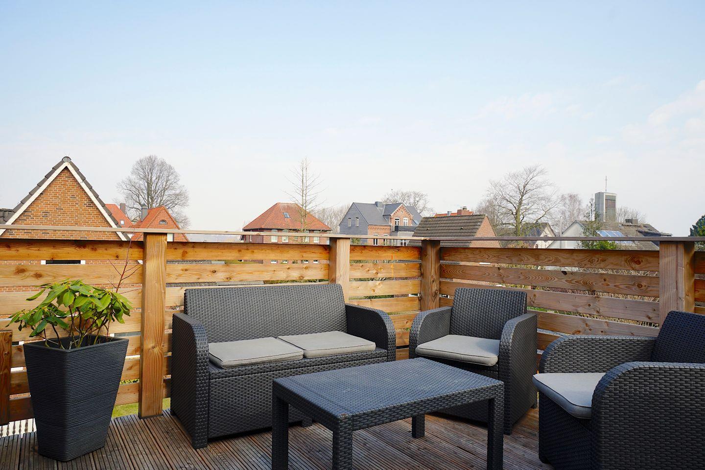 Ein besonderes Highlight ist der Balkon, von dem aus ihr einen herrlichen Blick auf die Umgebung genießen könnt. Gartenmöbel stehen bereit, so dass ihr hier bei Kaffee oder Tee entspannen könnt. Zudem ist die Wohnung mit einer HiFi-Anlage ausgestattet, die das Hörerlebnis während des Aufenthalts bereichert.