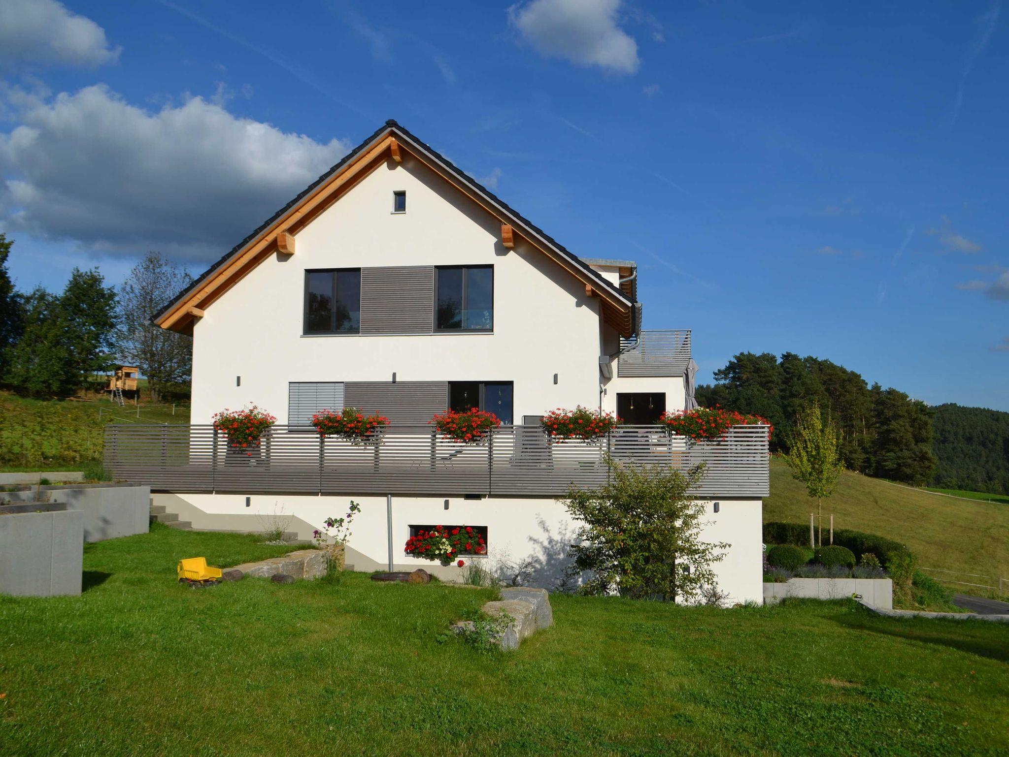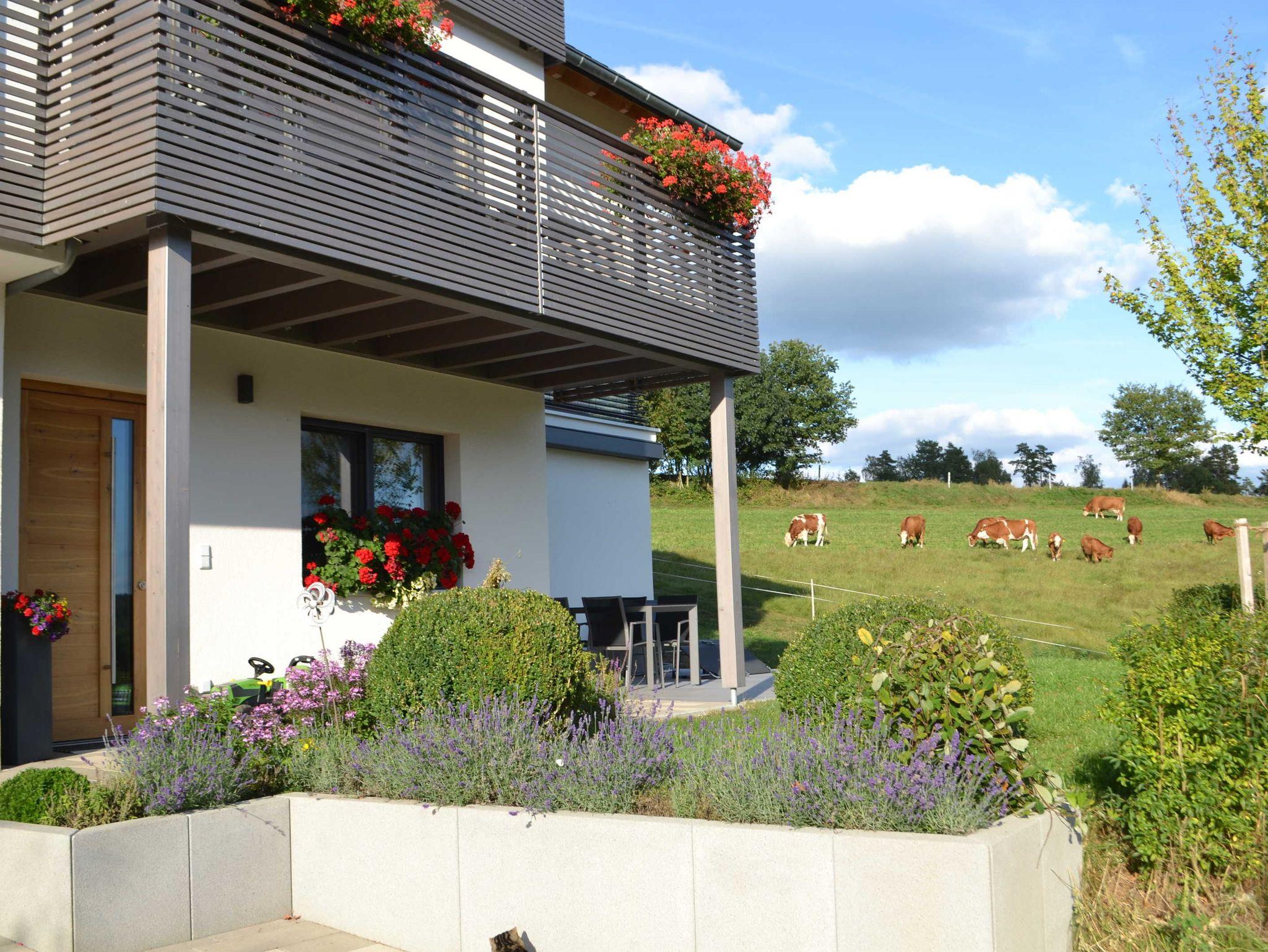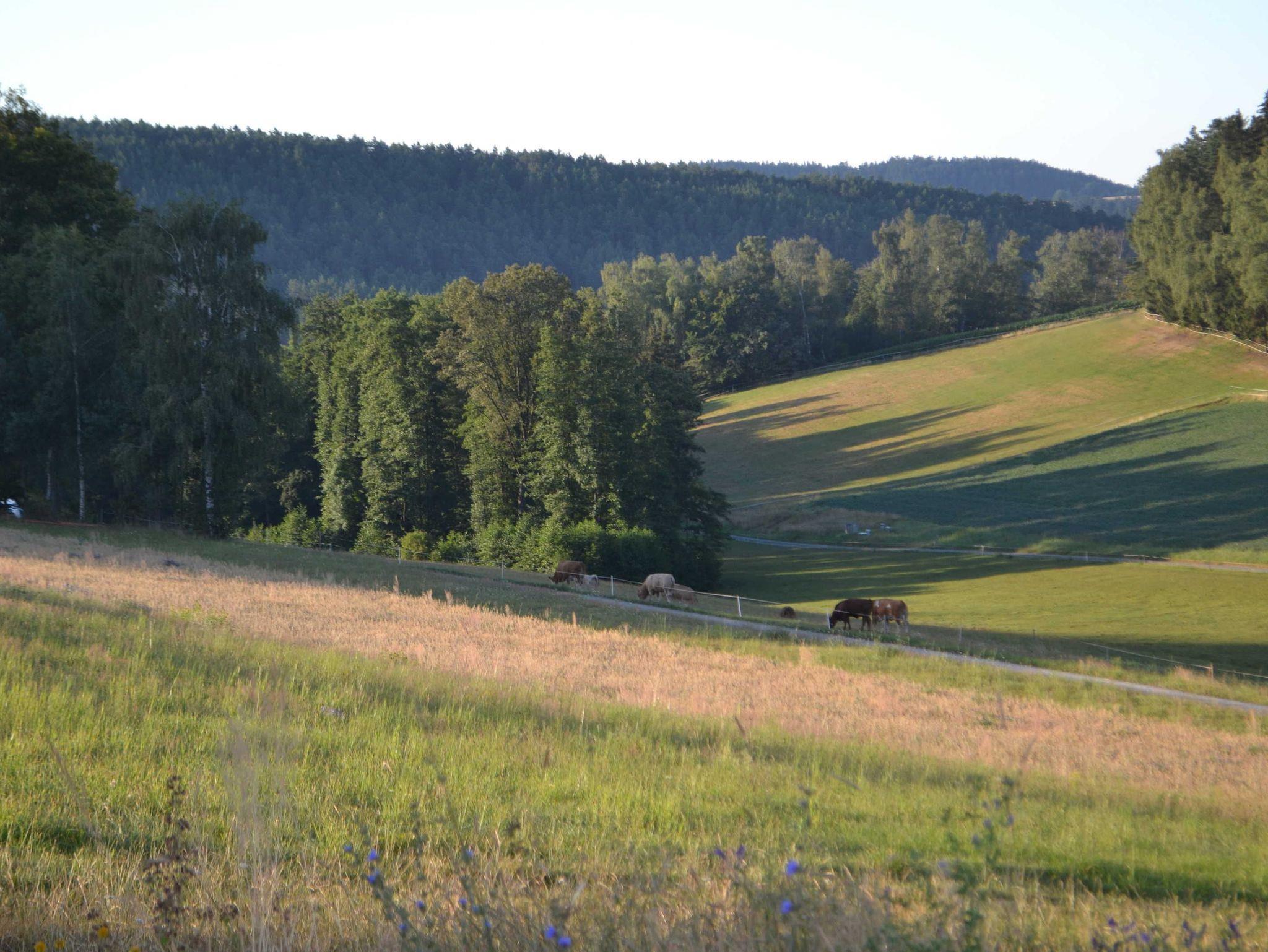 und Garten mit freiem Talblick auf umliegende Wiesen, Kuhweiden,