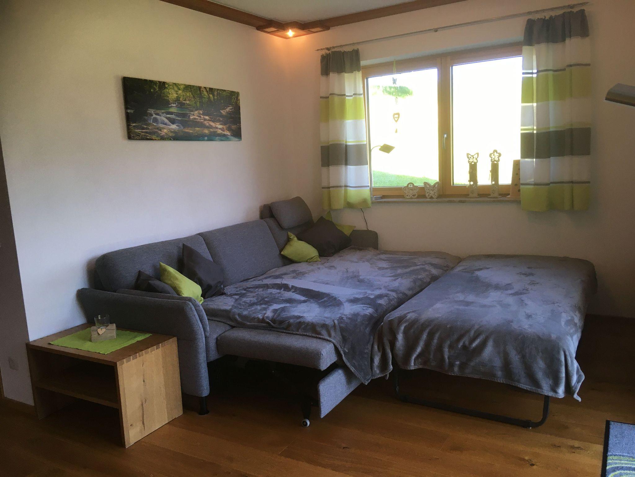 Im großen Wohnraum, befindet sich im Wohnzimmer ein Schlafsofa für 2 Personen.