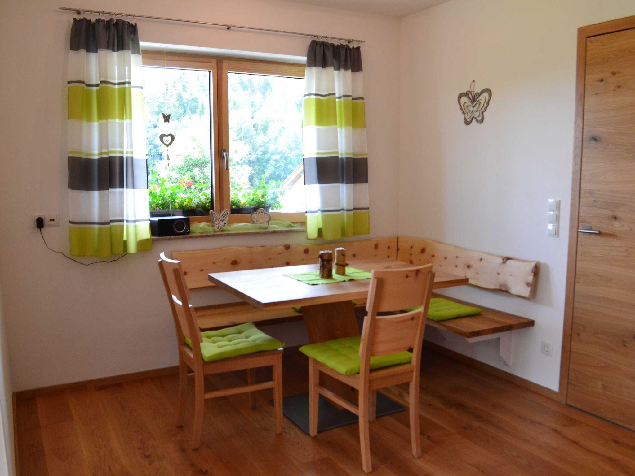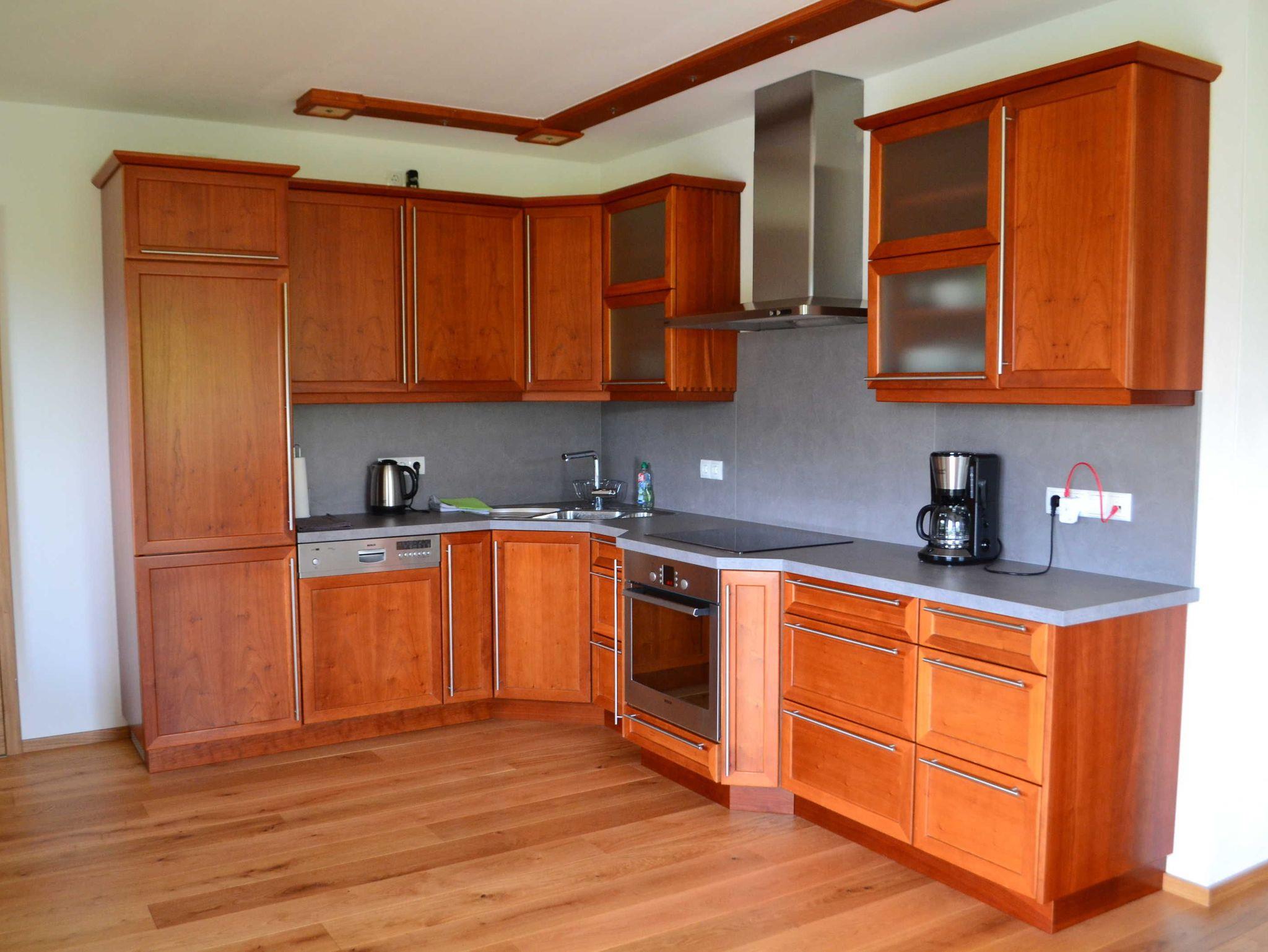 Die hochwertige Wohnung wurde liebevoll mit massiven Eiche- und Zirbenholzmöbel ausgestattet.