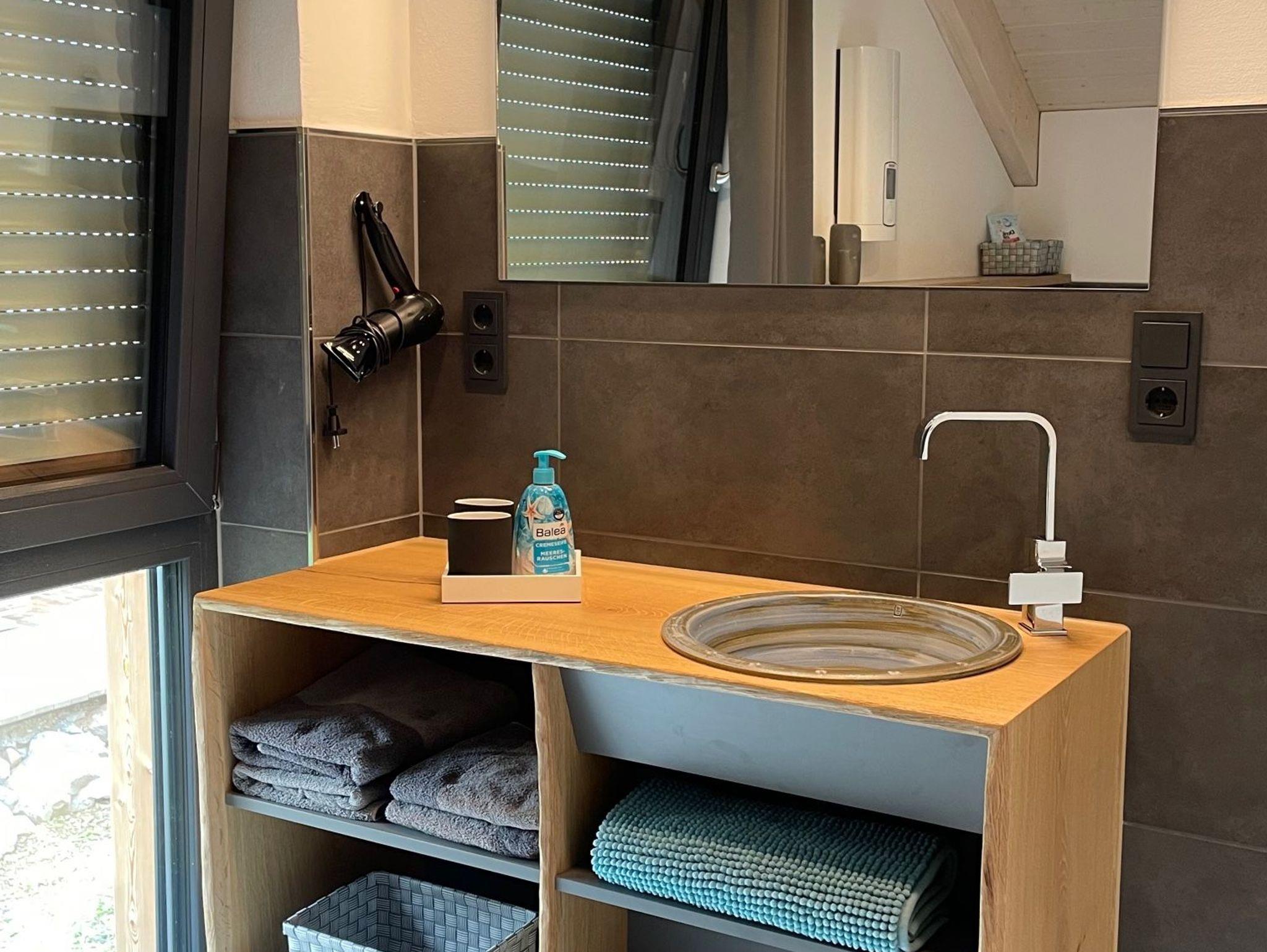Im Obergeschoß befindet sich ein zweites Bad mit freistehender Badewanne und zwei Ruheräume, einer davon mit eigenem Balkon und Blick vom Bett ins Grün. The Green One bietet Platz für 2–5 Personen, mit einem großzügigen Wohn-, Küchen- und Essbereich, zwei Bädern und zwei, bzw. drei Schlafzimmern.