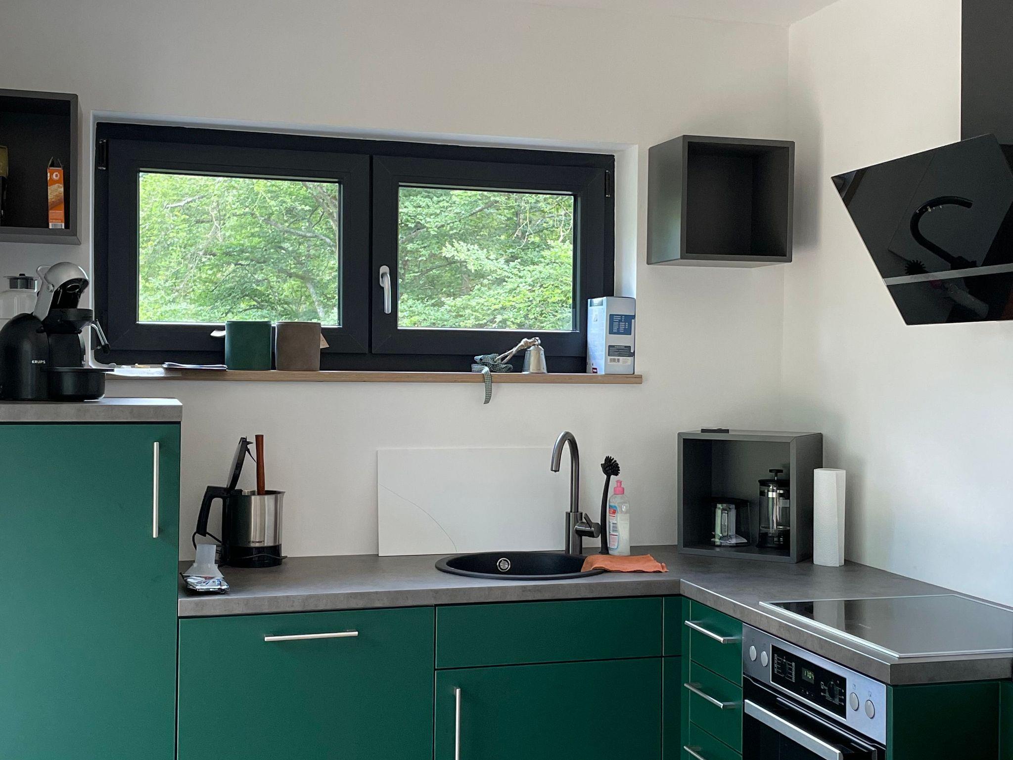 In geräumiger Atmosphäre erwartet sie eine mit Liebe zum Detail ausgesuchte Inneneinrichtung, die Farbe Grün haben wir von draußen nach drinnen getragen, daher auch der Name The Green One. Ein Ofen sorgt für die Gemütlichkeit an kalten Tagen.
