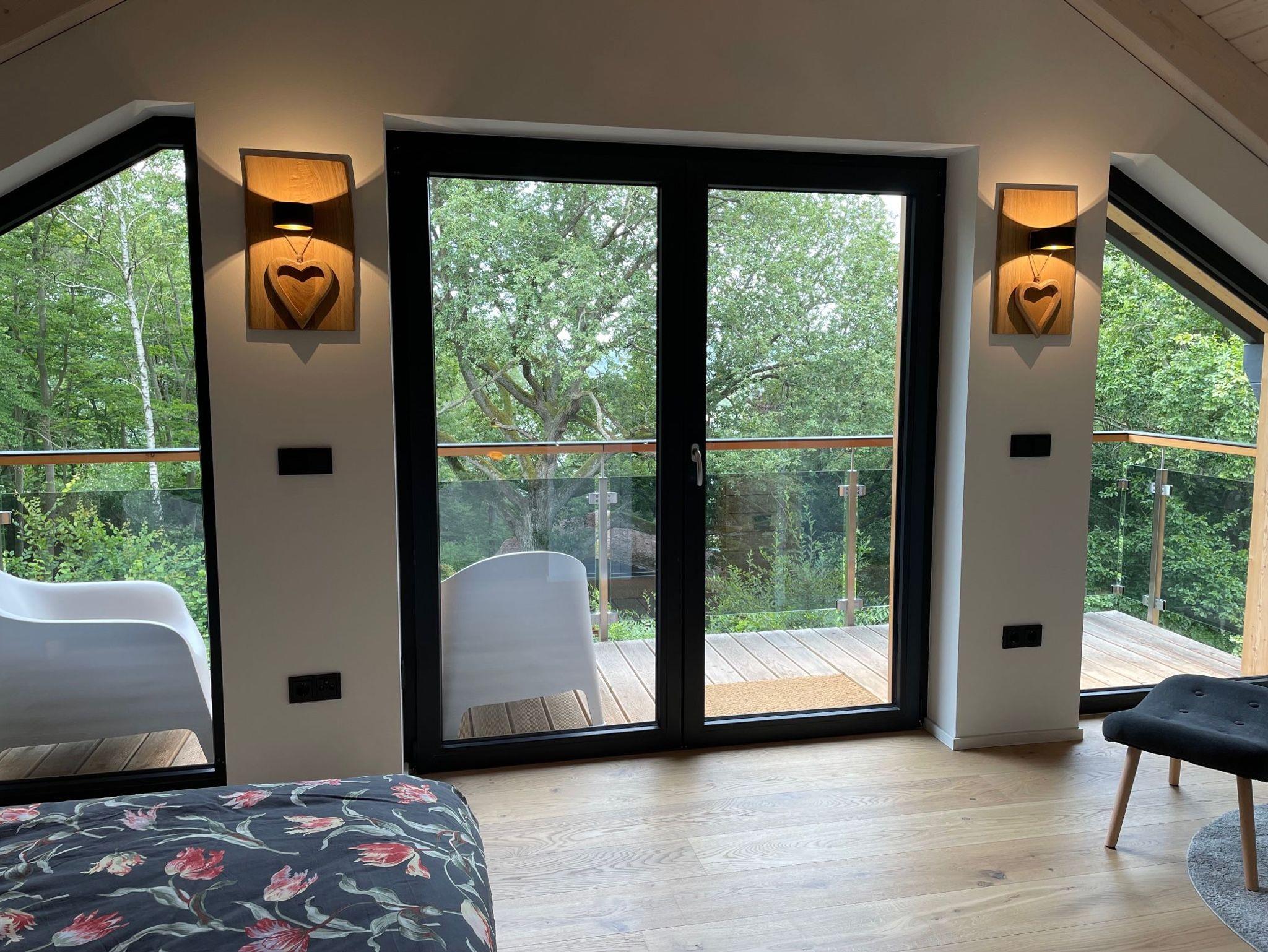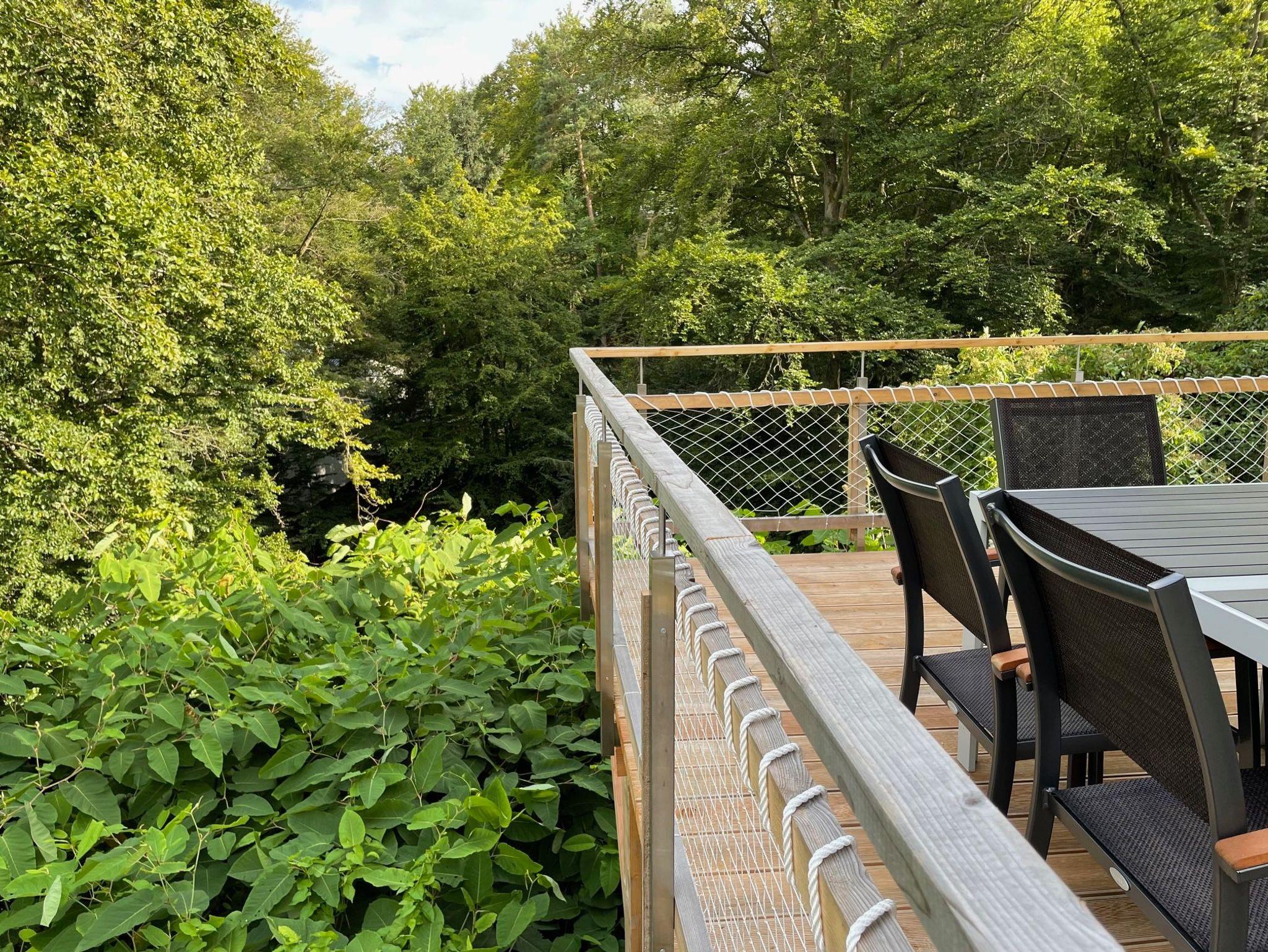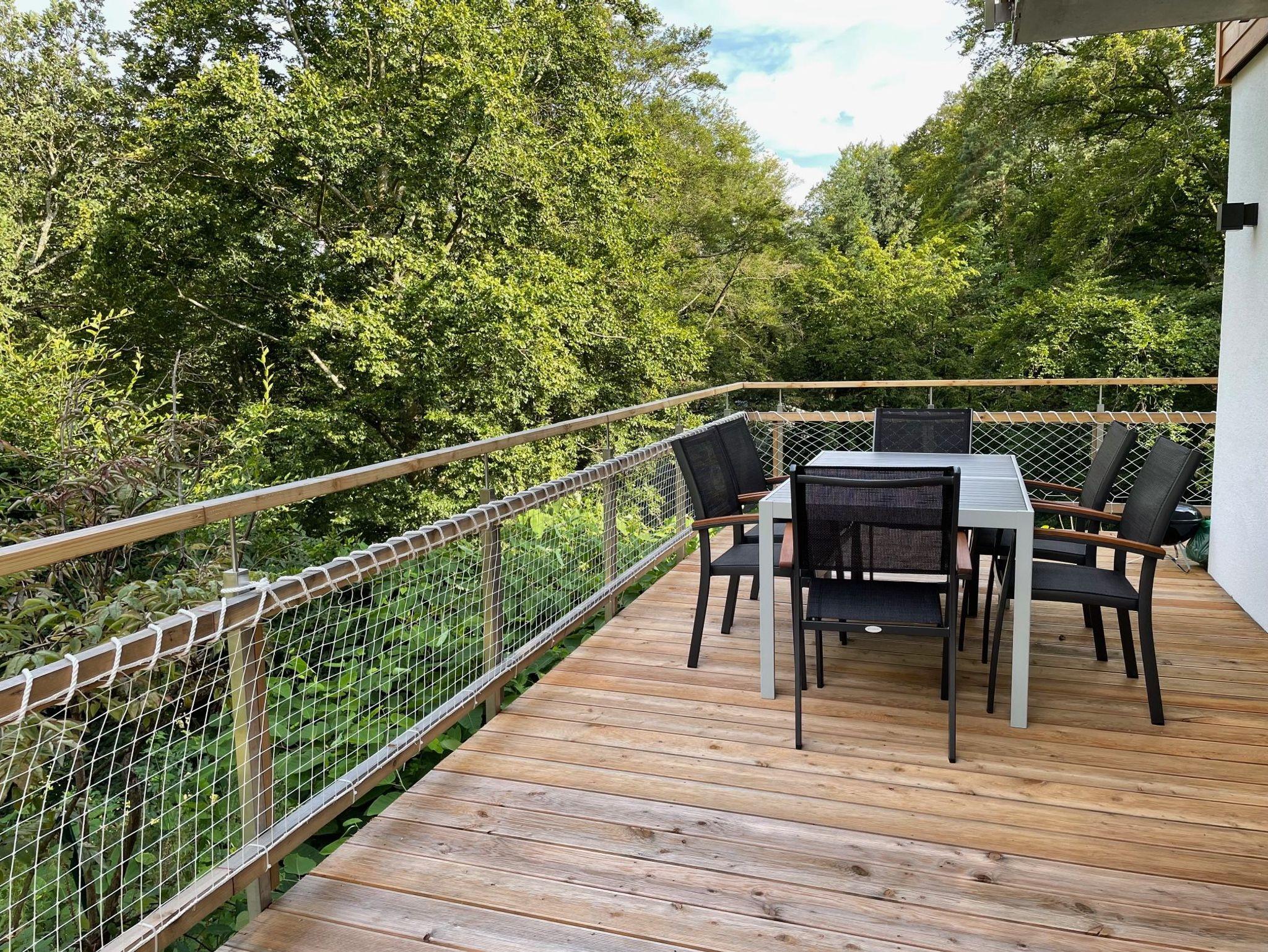 Von der großzügigen Terrasse vor dem Wohnzimmer haben sie einen wundervollen Blick in ein Buchenwaldtal oder direkt durch die Baumwipfel auf den Edersee.