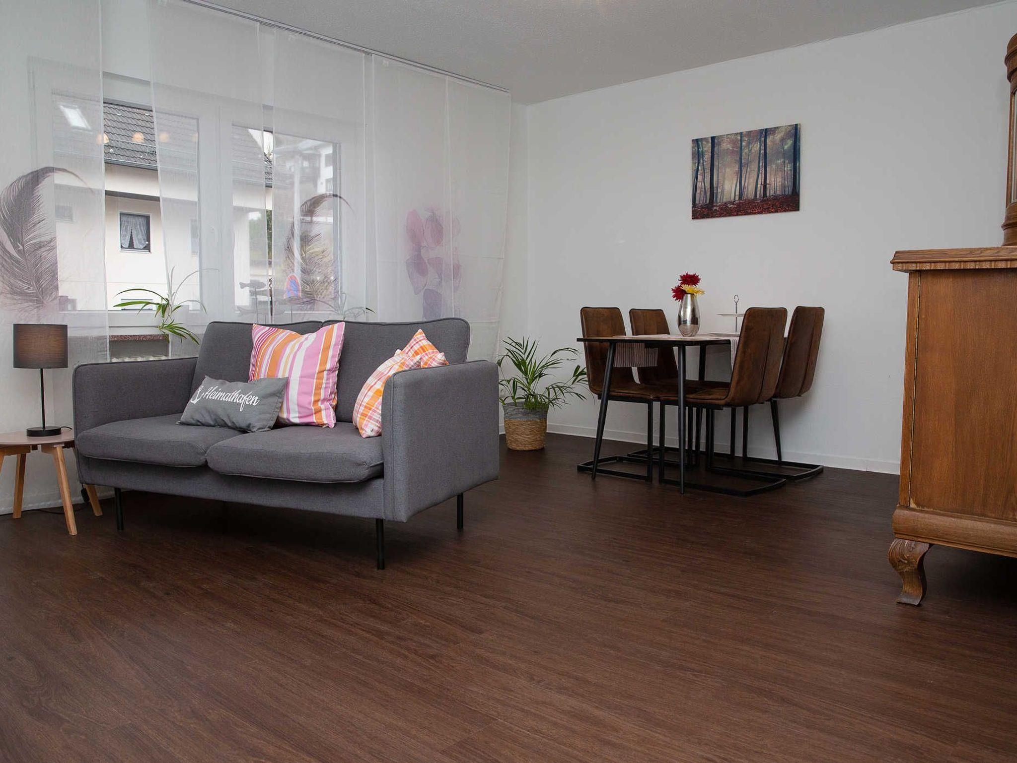 Unsere 50 qm große Ferienwohnung „Ost“ befindet sich im 1. Obergeschoss unseres Ferienhauses „Heimathafen“. Die allergikerfreundliche Nichtraucher-Wohnung mit offenem Grundriss umfasst einen gemütlichen Wohn- und Essbereich mit Smart-TV und direktem Zugang zum eigenen Balkon, eine gut ausgestattete Küche, ein gemütliches Schlafzimmer und ein Dusch-Bad.