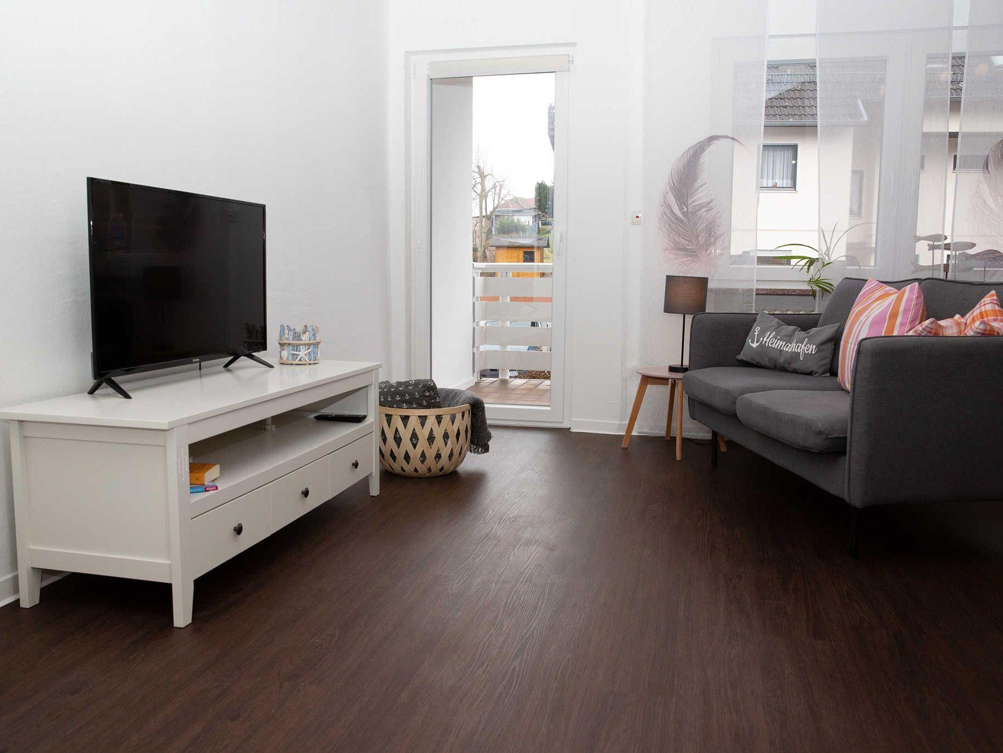 Unsere 50 qm große kinderfreundliche Ferienwohnung „Ost“ befindet sich im 1. Obergeschoss unseres Ferienhauses „Heimathafen“. Die allergikerfreundliche Nichtraucher-Wohnung mit offenem Grundriss umfasst einen gemütlichen Wohn- und Essbereich mit großem TV und direktem Zugang zum eigenen Balkon, eine gut ausgestattete Küche, ein gemütliches Schlafzimmer und ein Dusch-Bad.