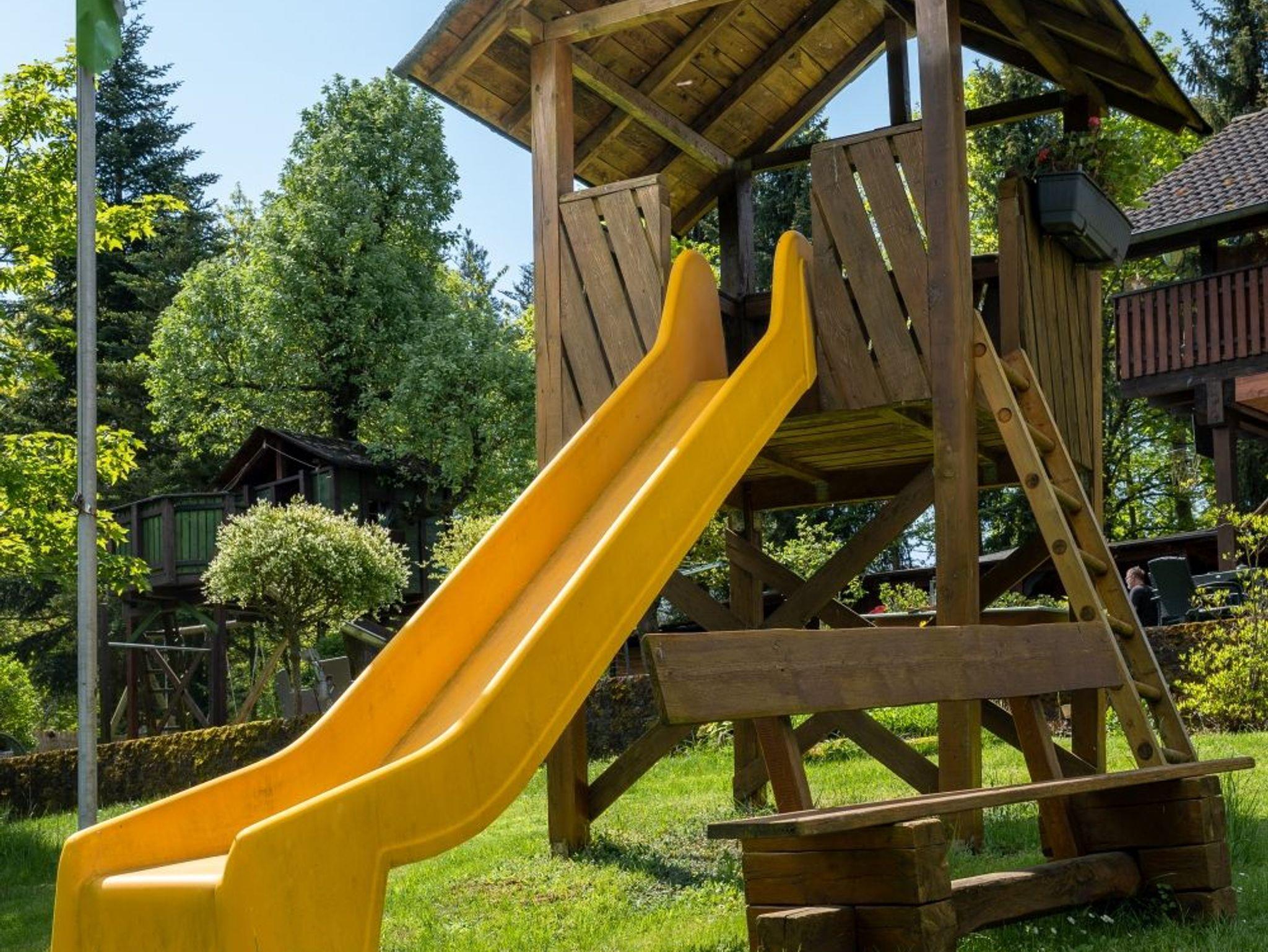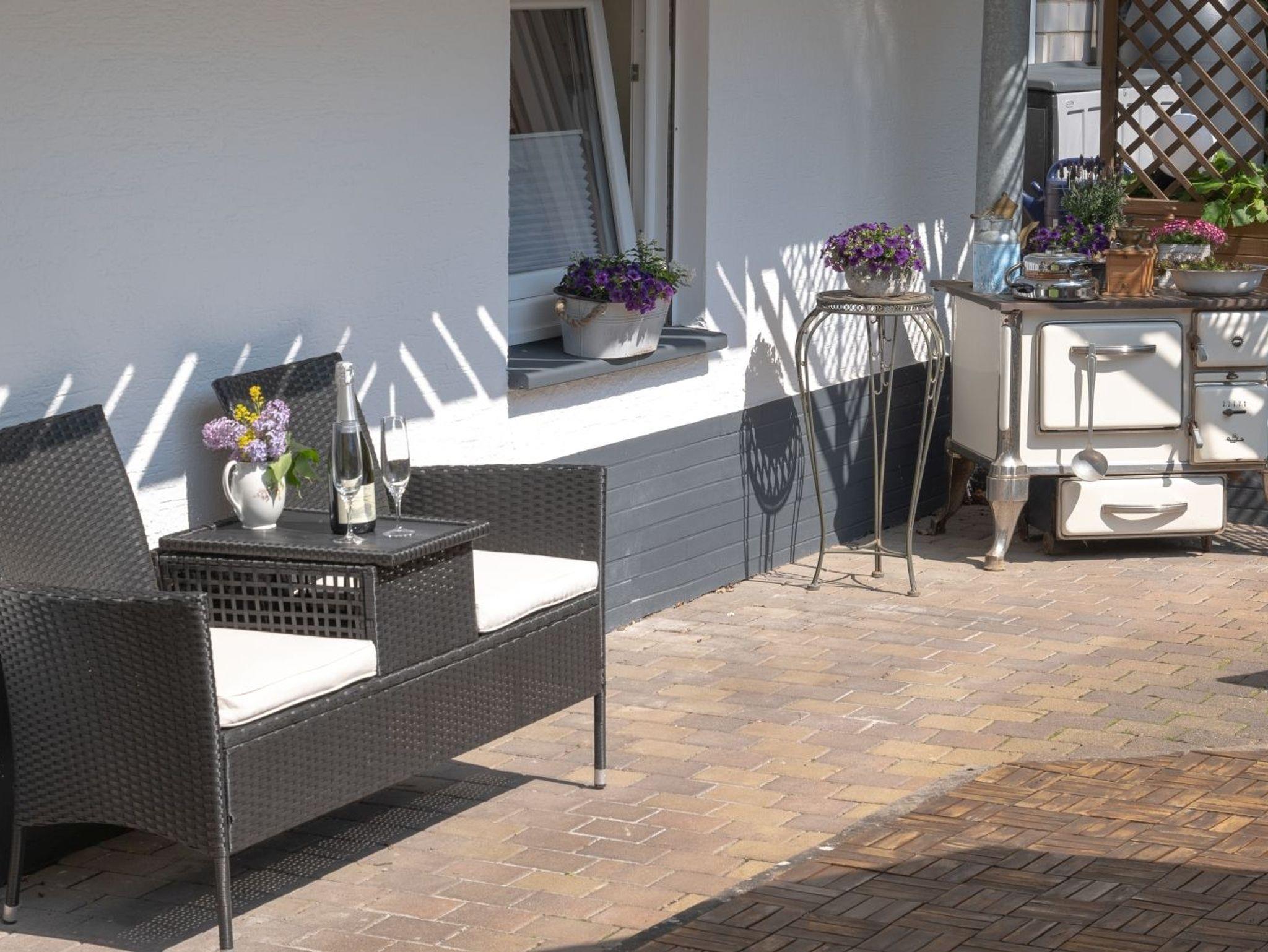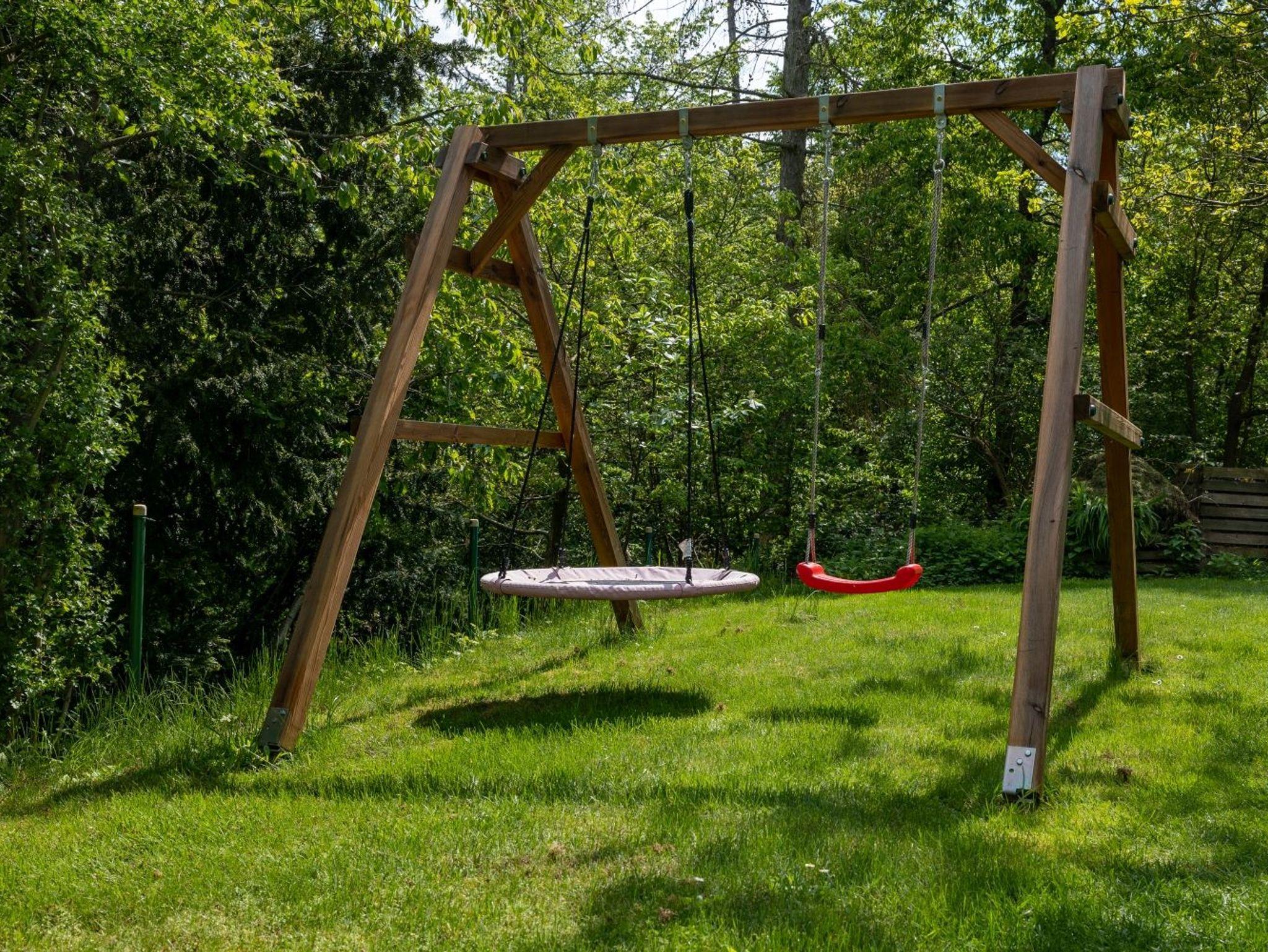 Eine gemütliche Sitzecke auf der Terrasse lädt zum idyllischen Grillabend ein. Auch ein Grill gehört zu unserem Angebot. Im Garten mit Rutsche und Sandkasten können sich Ihre Kinder austoben und eine große Rasenfläche bietet genügend Spielraum für Ihre Kleinen. So können Sie angrenzend an den Wald, fernab von Verkehr- und Straßenlärm, einen gemütlichen Abend bei uns verbringen.