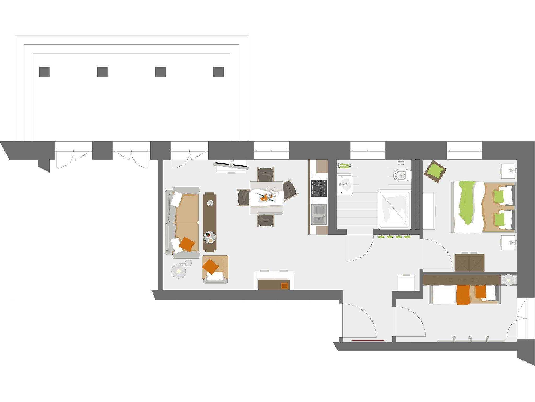 Im Haupthaus ist ein Fahrstuhl vorhanden, lediglich die Loftwohnung im Dachgeschoss kann nur über eine Treppe vom 2. Obergeschoss erreicht werden. Im Erdgeschoss befindet sich ein kleiner Aufenthaltsraum für maximal 10 Personen, der von allen Gästen genutzt werden kann. Auf dem Gelände befindet sich ein Raum für Fahrräder mit Lademöglichkeit für das E-Bike. Ein Grillplatz sowie eine Spielmöglichkeit für Kinder sind vorhanden. Alle Wohnungen sind Nichtraucherwohnungen. Auf Anfrage stellen wir Ihnen ein Kinderbett und Hochstuhl zur Verfügung. Vor dem Gebäude finden Sie kostenlose Parkplätze. Bettbezüge, Handtücher sowie eine Hygiene-Erstausstattung sind im Preis enthalten. Hunde sind in einigen Wohnungen willkommen. Pro Wohnung kann auf Anfrage ein Hund mit maximaler Schulterhöhe von 39 cm mitgebracht werden. Hierfür wird eine zusätzliche Reinigungspauschale von 30 € berechnet.