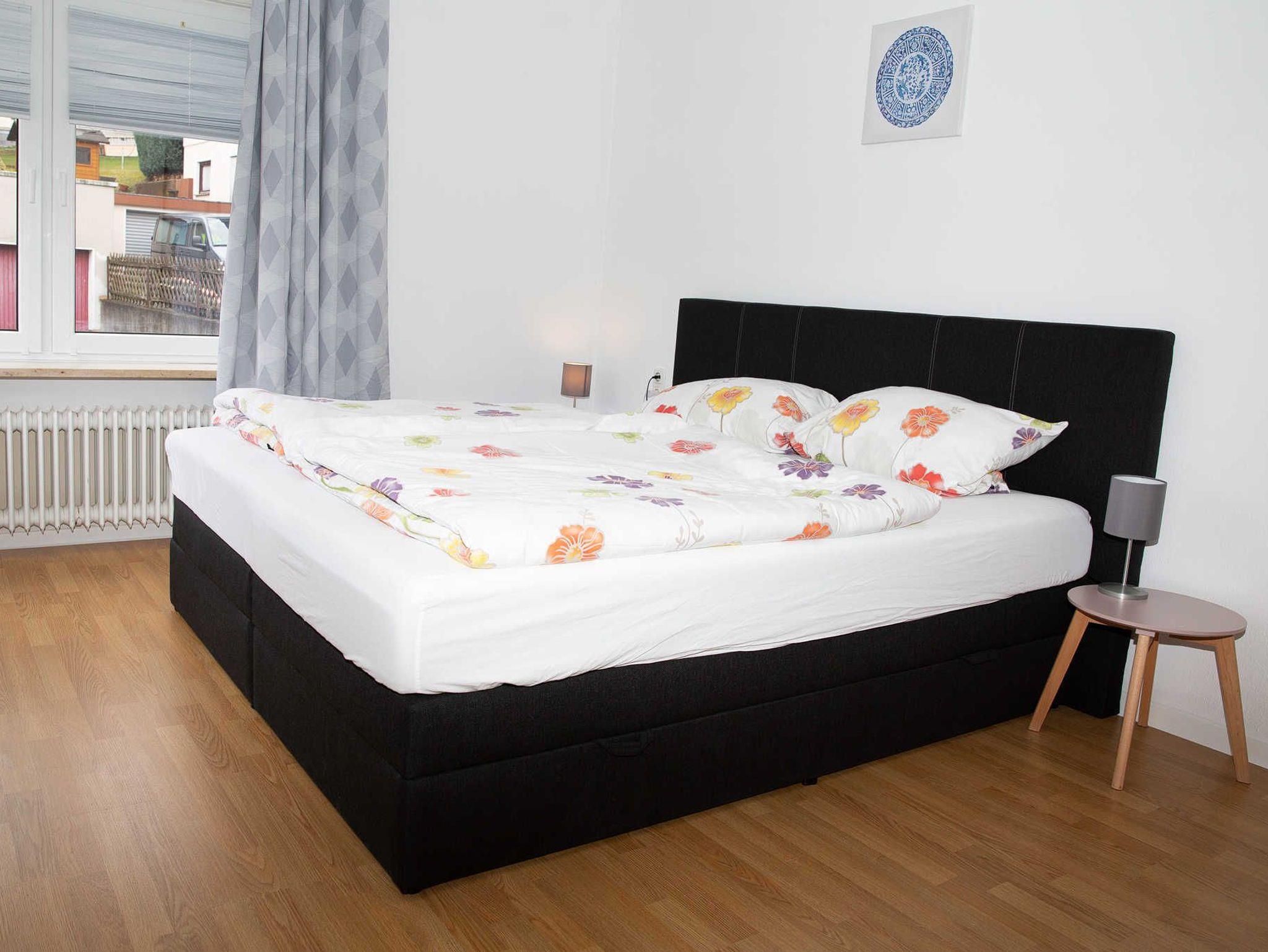 ? Ein Schlafzimmer mit Boxspring-Doppelbett 180x200 cm und tollem Ausblick Richtung Edertalsperre