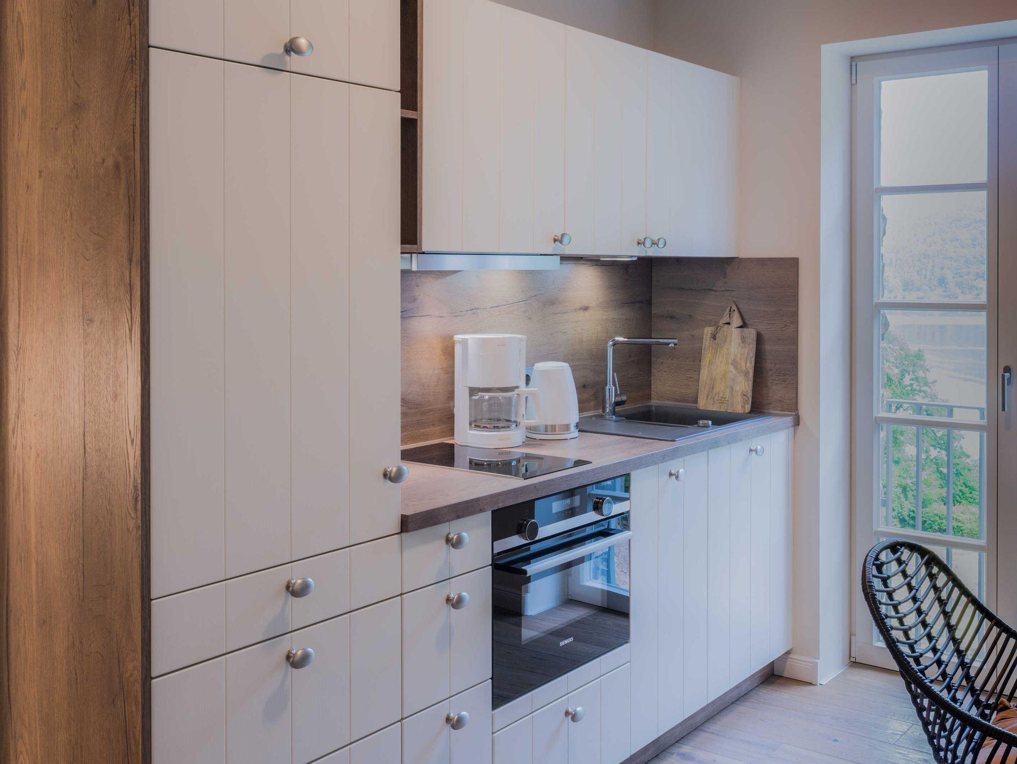 Die Zweiraum-Ferienwohnung liegt im Erdgeschoss des denkmalgeschützten Haupthauses. Über den Lift erreicht man diese wunderschön eingerichtete 42 qm große Wohnung, die mit ihrem Charme jeden begeistern wird. Zwei Personen können sich hier den Traum von einem erholsamen Urlaub im Nationalpark Kellerwald mit einem herrlichen Blick auf den See erfüllen.