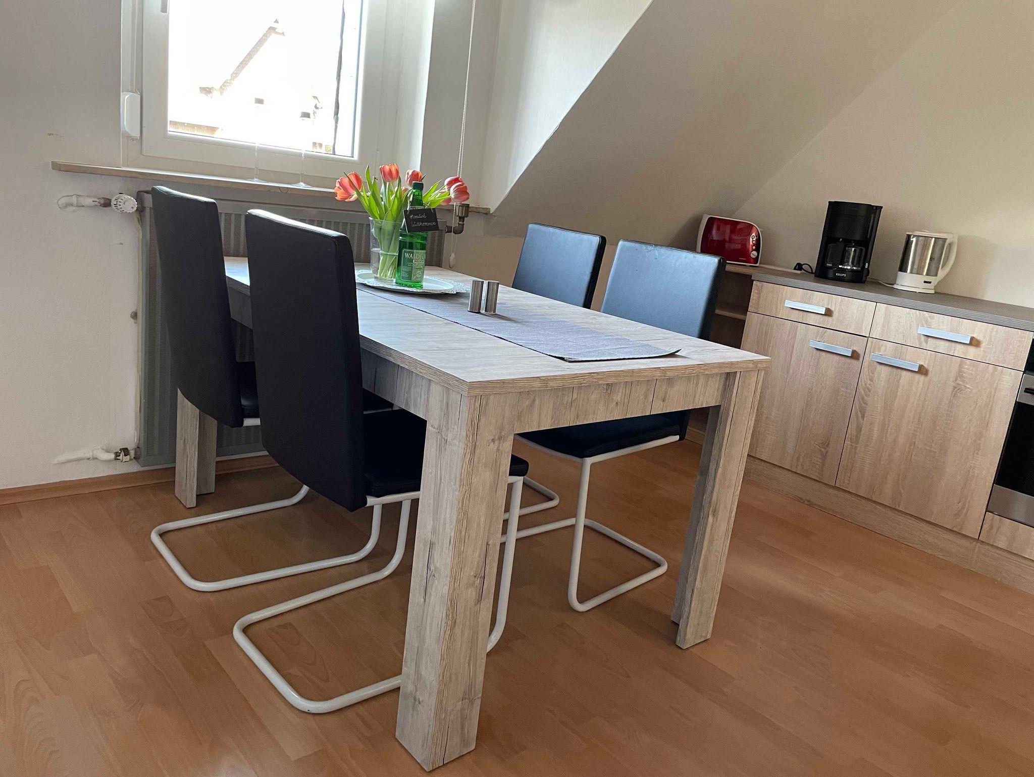 Mit ihren 80qm im Dachgeschoss bietet die Ferienwohnung Platz für maximal 4 Personen.