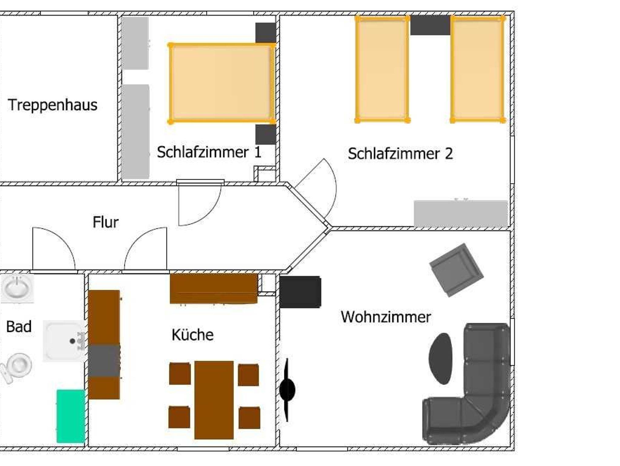In Schlafzimmer 2 befinden sich 2 Einzelbett (jeweils 90x2m) und ein Kleiderschrank.