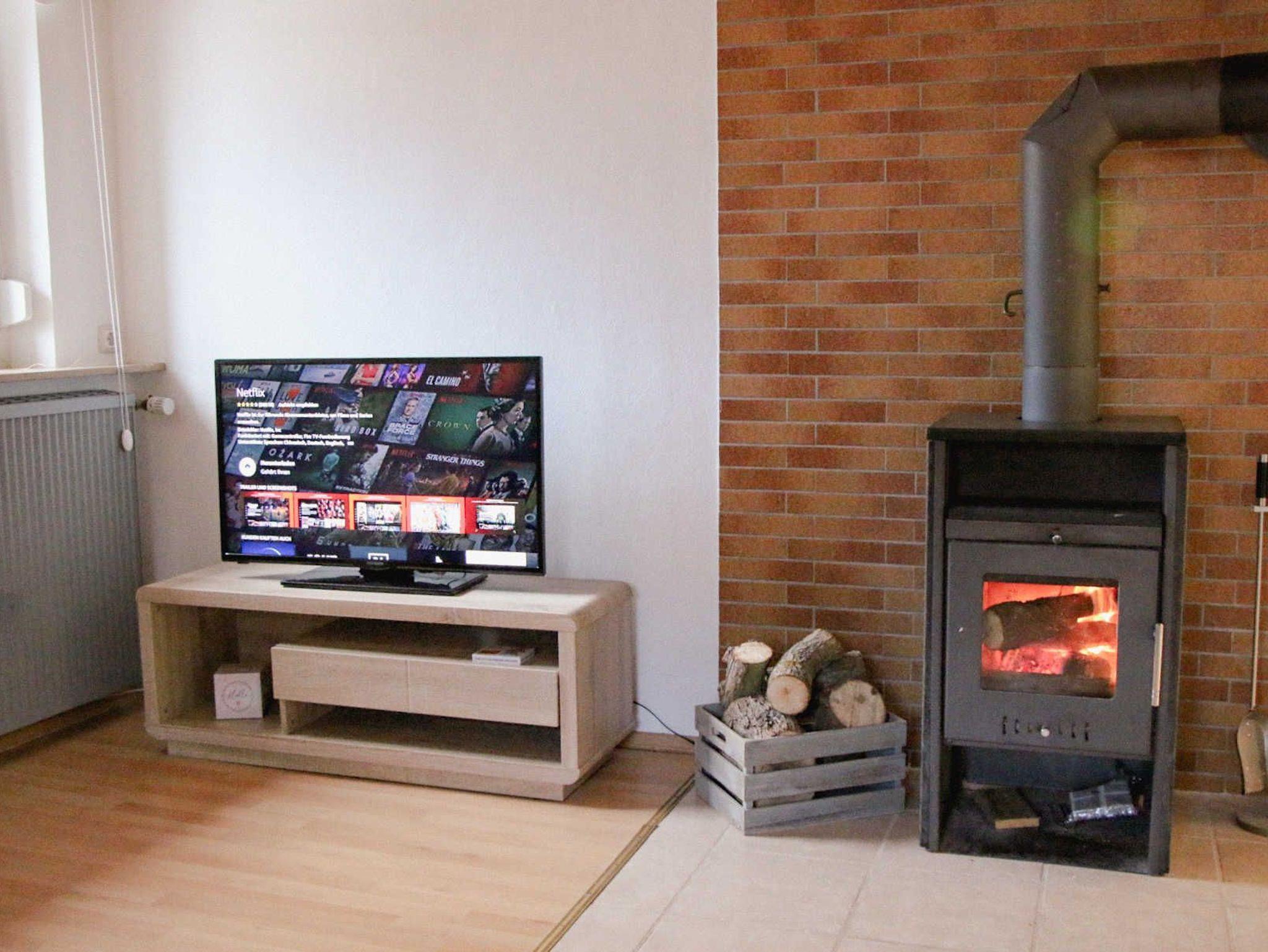 Der Wohnbereich ist ausgestattet mit einer Sofalandschaft, mit einem internetfähigem Flachbild-TV mit SAT-Anschluss und einem Kamin für die kalten Tage im Winter.