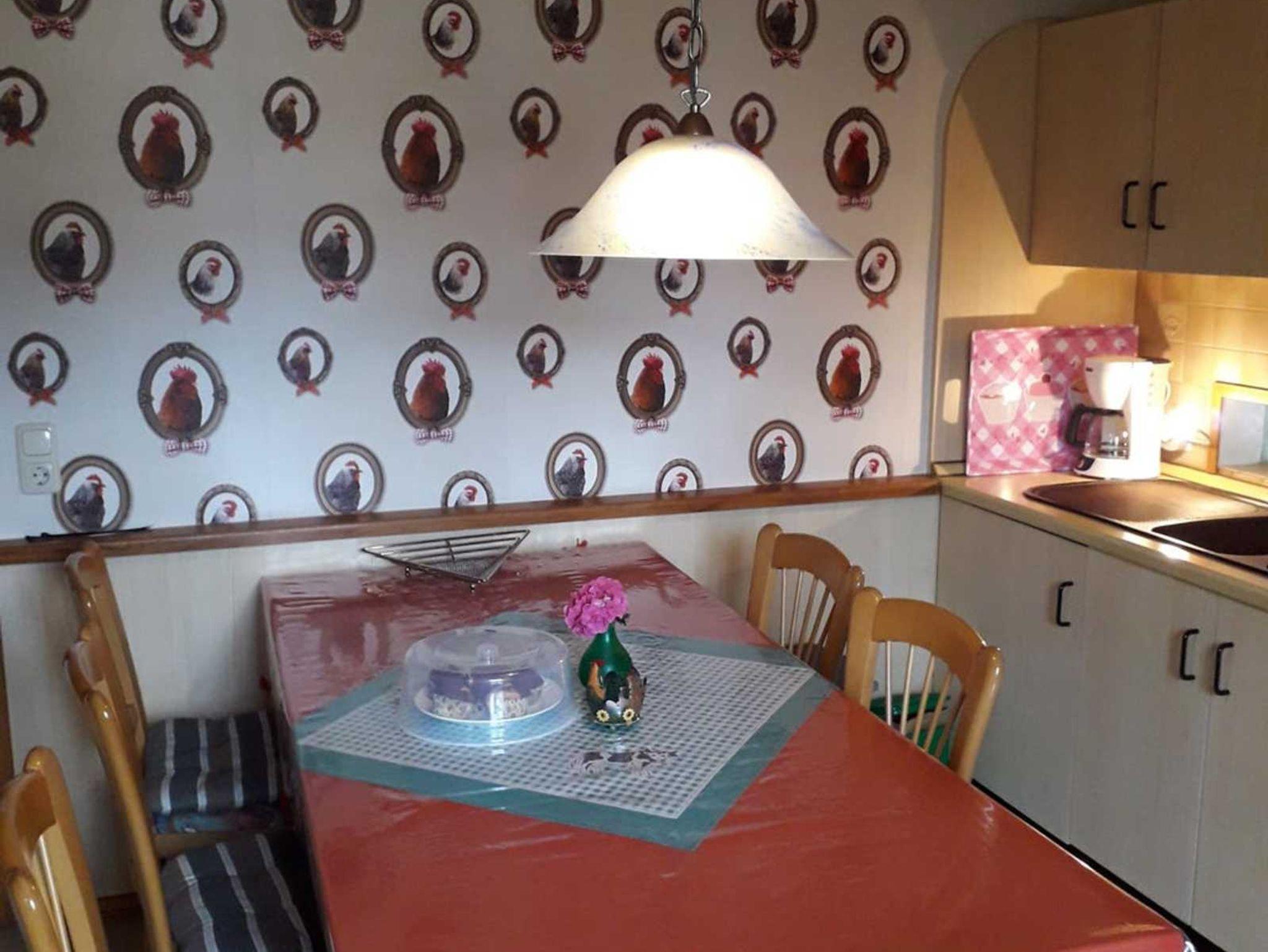 Die 3-Sterne Ferienwohnung ist für zwei bis sechs Personen geeignet und mit drei Schlafzimmern, einem Wohnzimmer, zwei Badezimmern, einer Küche und einer Terrasse sowie einem Carport ausgestattet. Größe: ca. 65 qm Zwei Schlafzimmer sind mit Doppelbetten, eines mit Etagenbett und jeweiligen Kleiderschränken ausgerüstet. Bettwäsche ist im Preis inbegriffen. Im Wohnzimmer befinden sich ein Sat-TV und ein Telefon. Die bequeme Couch lädt zu gemütlichen Abenden ein. Die Küche ist mit Kühlschrank, E-Herd, Ofen und Mikrowelle ausgestattet. Im Bad finden Sie Handtücher und eine Waschmaschine steht Ihnen ebenfalls zur Verfügung.