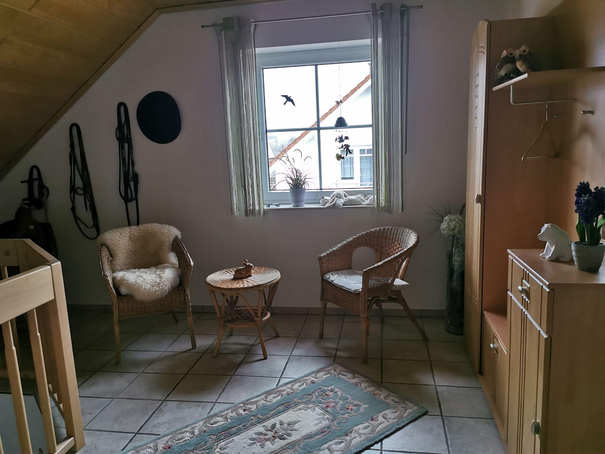 Eine bildhübsche, außergewöhnlich schön gestaltete 2 Zimmer, Küche, Bad Wohnung in unserem Einfamilienhaus läd zum Entspannen ein. Die Küche ist komplett ausgestattet, die anderen Räume ebenfalls liebevoll eingerichtet. Das Bad mit Dusche, Badewanne, Bidet, WC und 2 separaten Waschzonen ein besonderes Highlight.