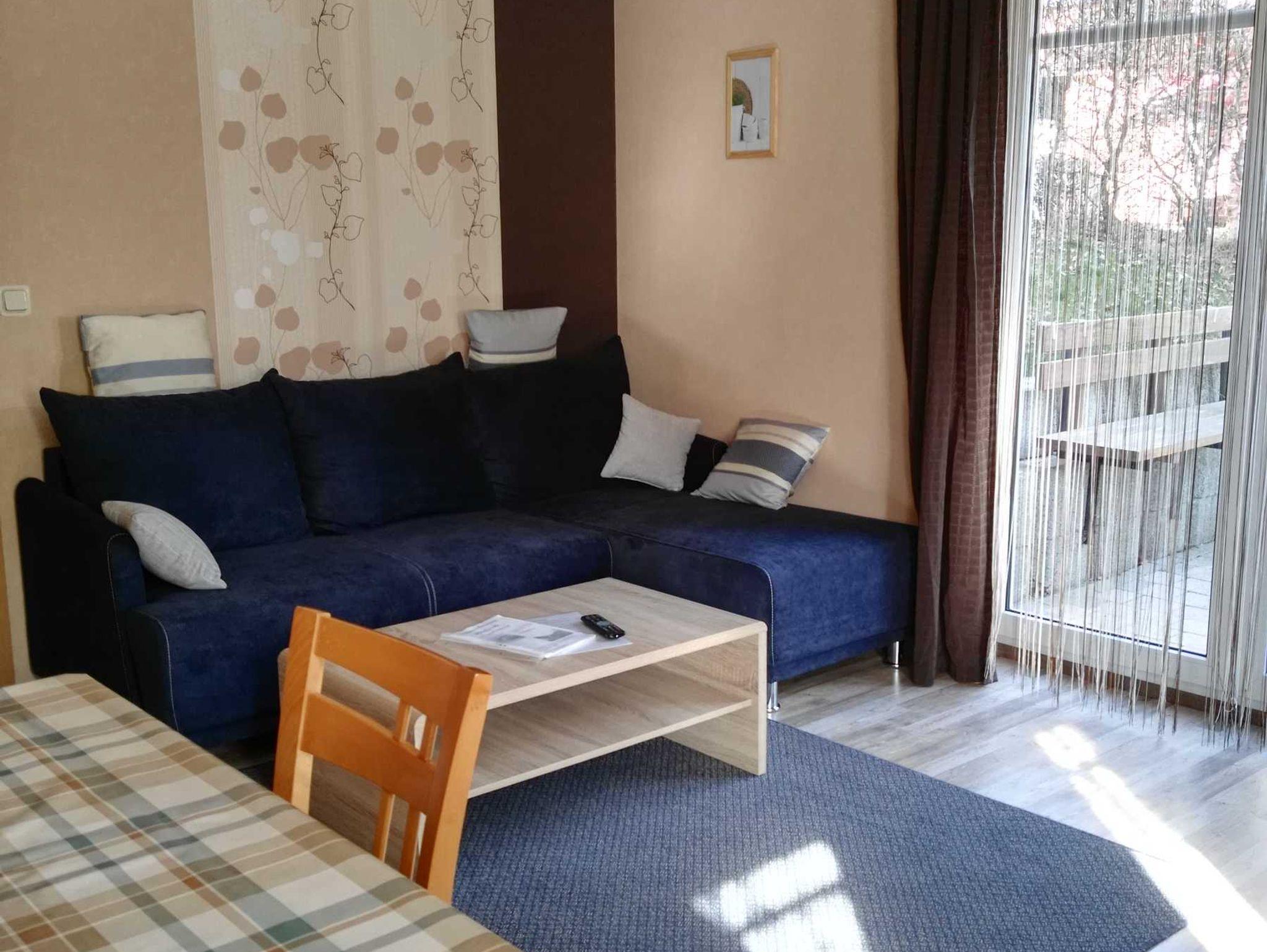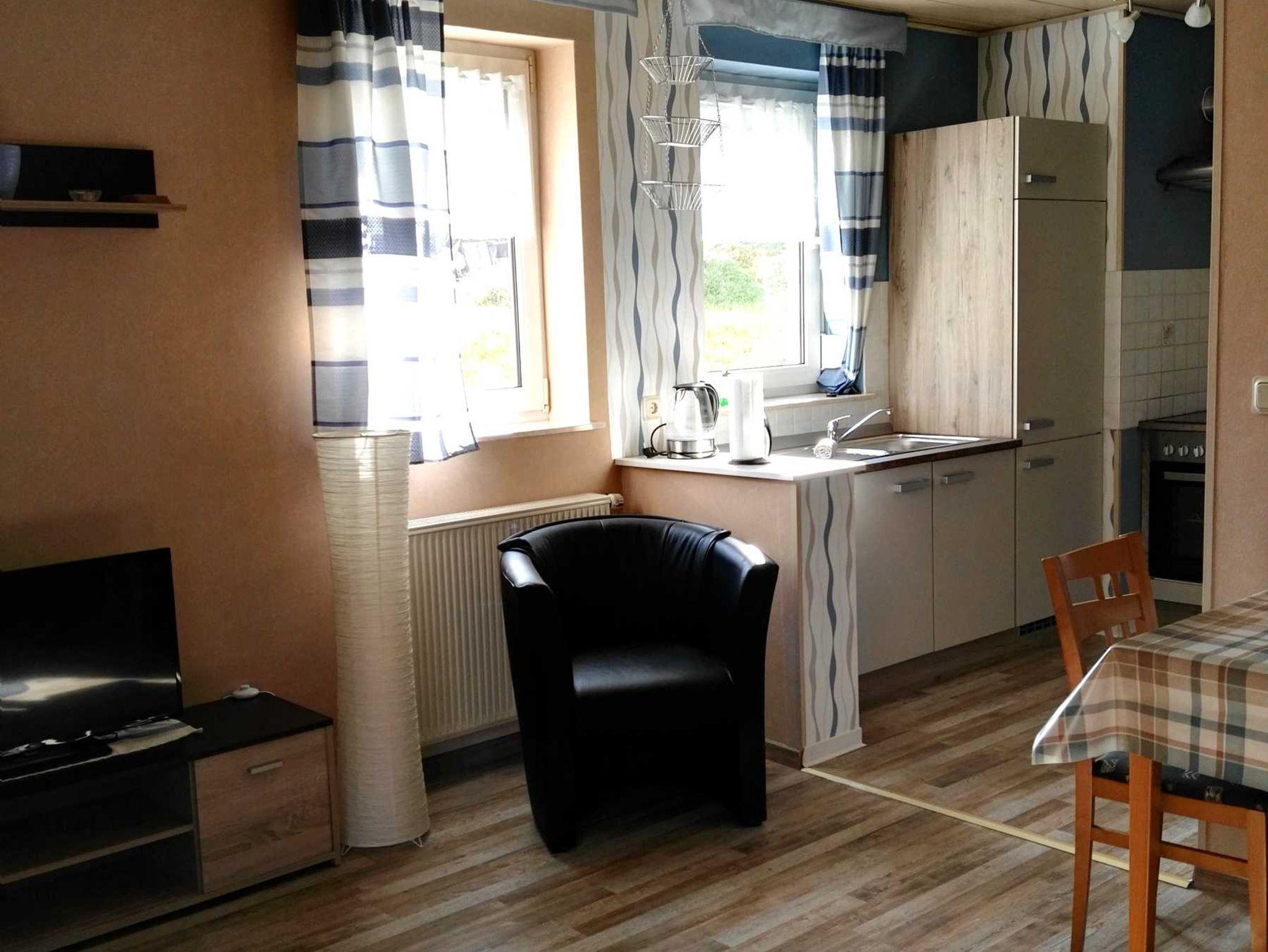 Diese Ferienwohnung verfügt über ein Schlafzimmer mit Doppelbett. Die Küche ist komplett mit Elektrogeräten ausgestattet und verfügt über eine Spülmaschine. Durch die offene Gestaltung der Küche hin zum Wohnzimmer, ergibt sich ein großzügiges Raumgefühl. Im geräumigen Badezimmer befindet sich eine Dusche mit WC und Waschbecken. Die Dusche wurde Anfang 2020 neu verfliest. Ein Föhn ist ebenfalls vorhanden. Ein Vinylboden verleiht dem Raum eine wohlige Atmosphäre. Ein gemütlich eingerichtetes Wohnzimmer mit ausreichend Sitzgelegenheiten, Flachbildschirm sowie einem Zugang zur Terrasse mit Strandkorb gehören hier zu den Ausstattungsmerkmalen. Genügend Sitzgelegenheiten mit entsprechenden Auflagen laden zum Frühstück im Freien ein. Hier kann man die Urlaubstage gemütlich und entspannt beginnen.